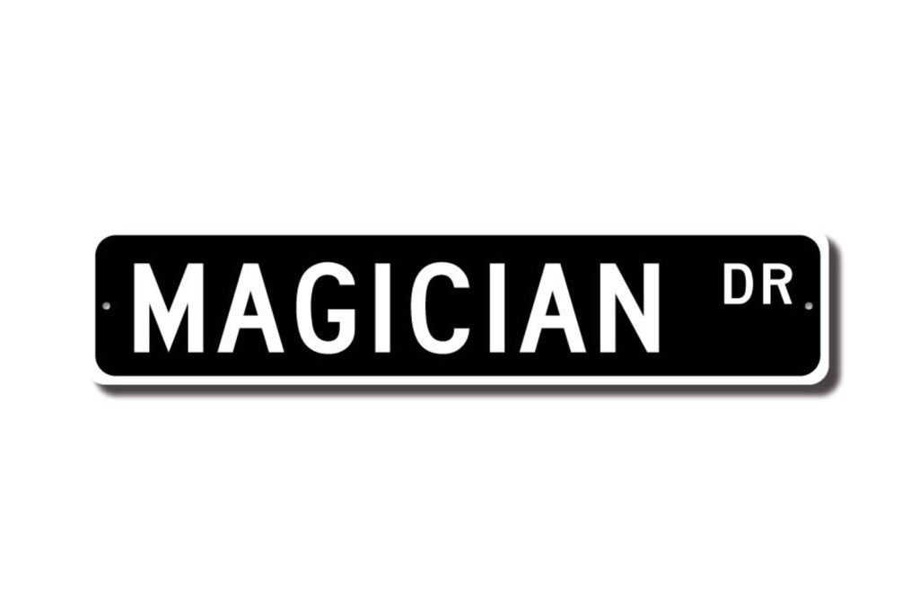Magicians check out this awesome street sign! This will make the perfect piece for any Magician or maybe you are a Magician looking for a cool decor piece. Made of premium aluminum it will stand the test of time. This sign will look great in any room, home den, cave, or office! Get this sign for your favorite Magician !