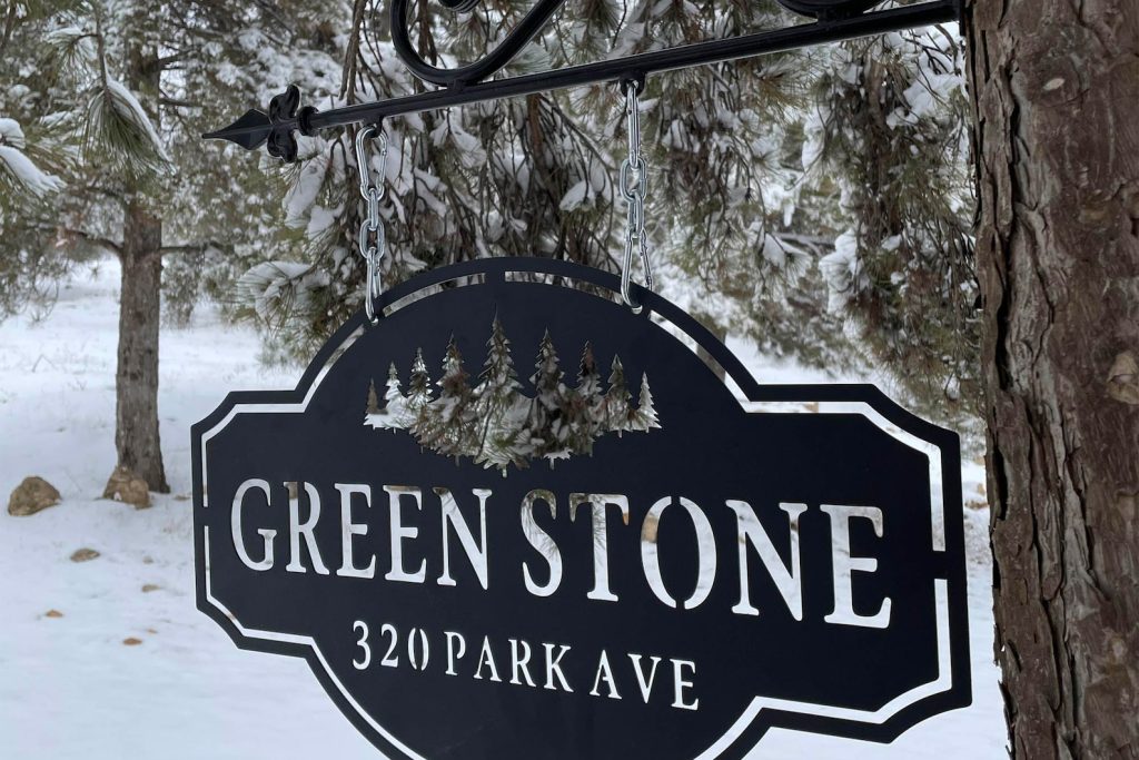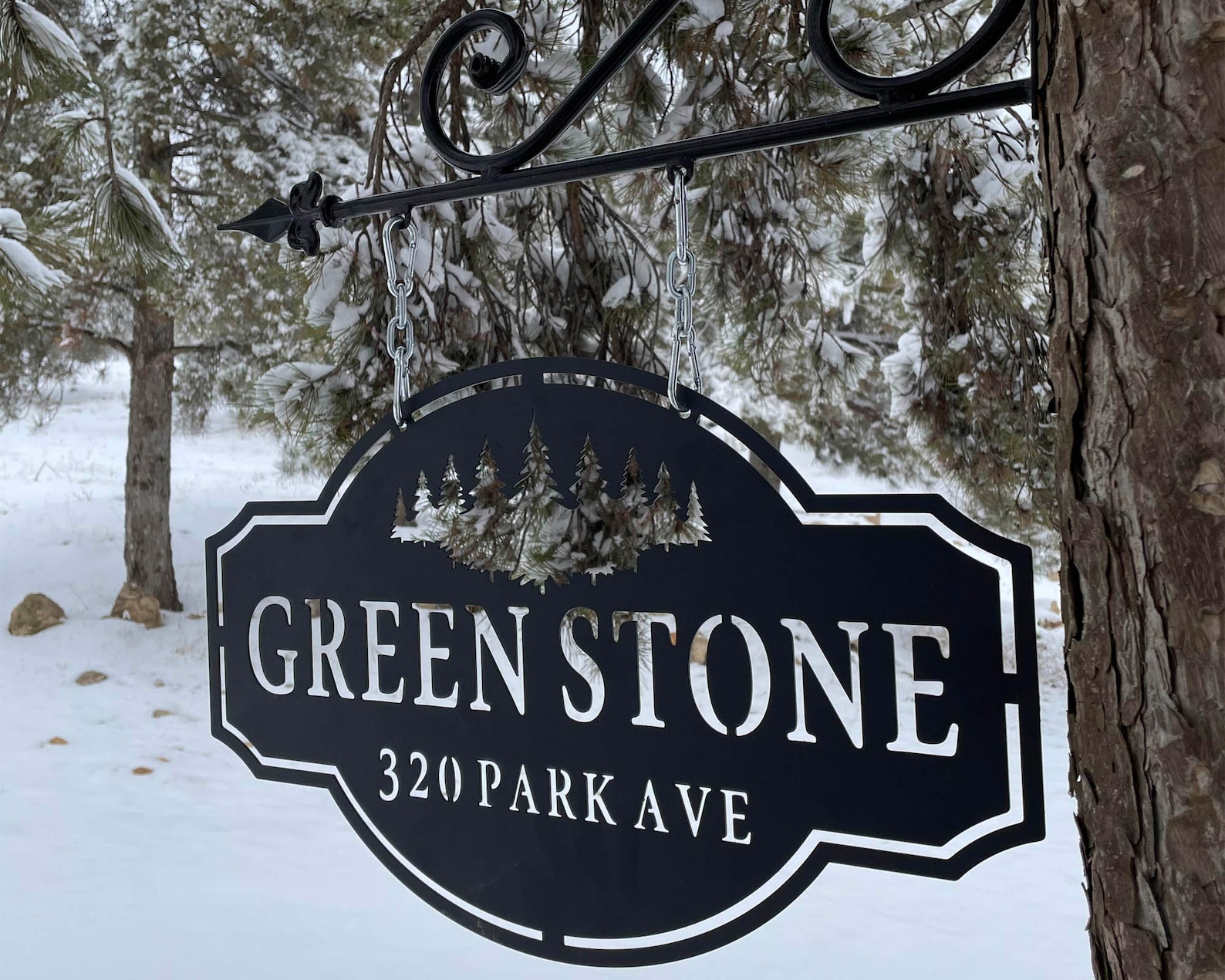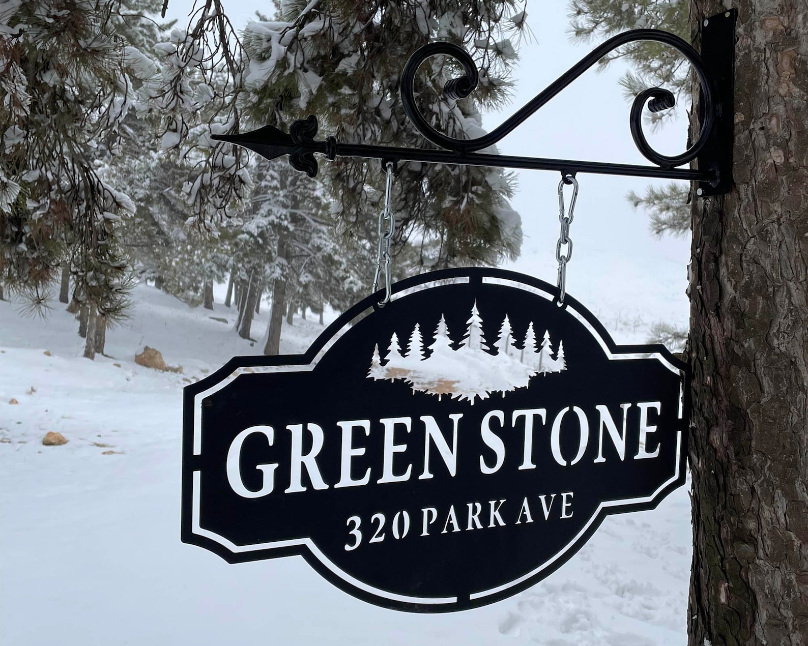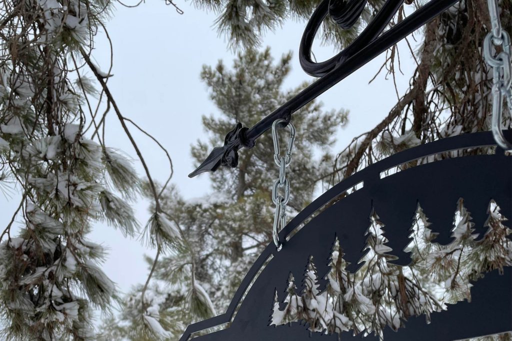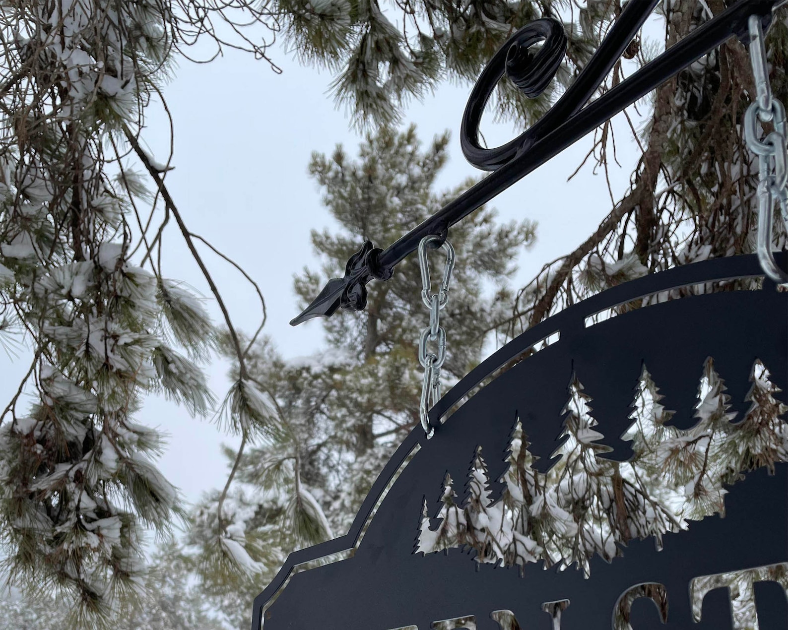 This is a personalized metal sign with a scroll hanging bracket. It comes with the hanging bracket, chain and carabiners.
