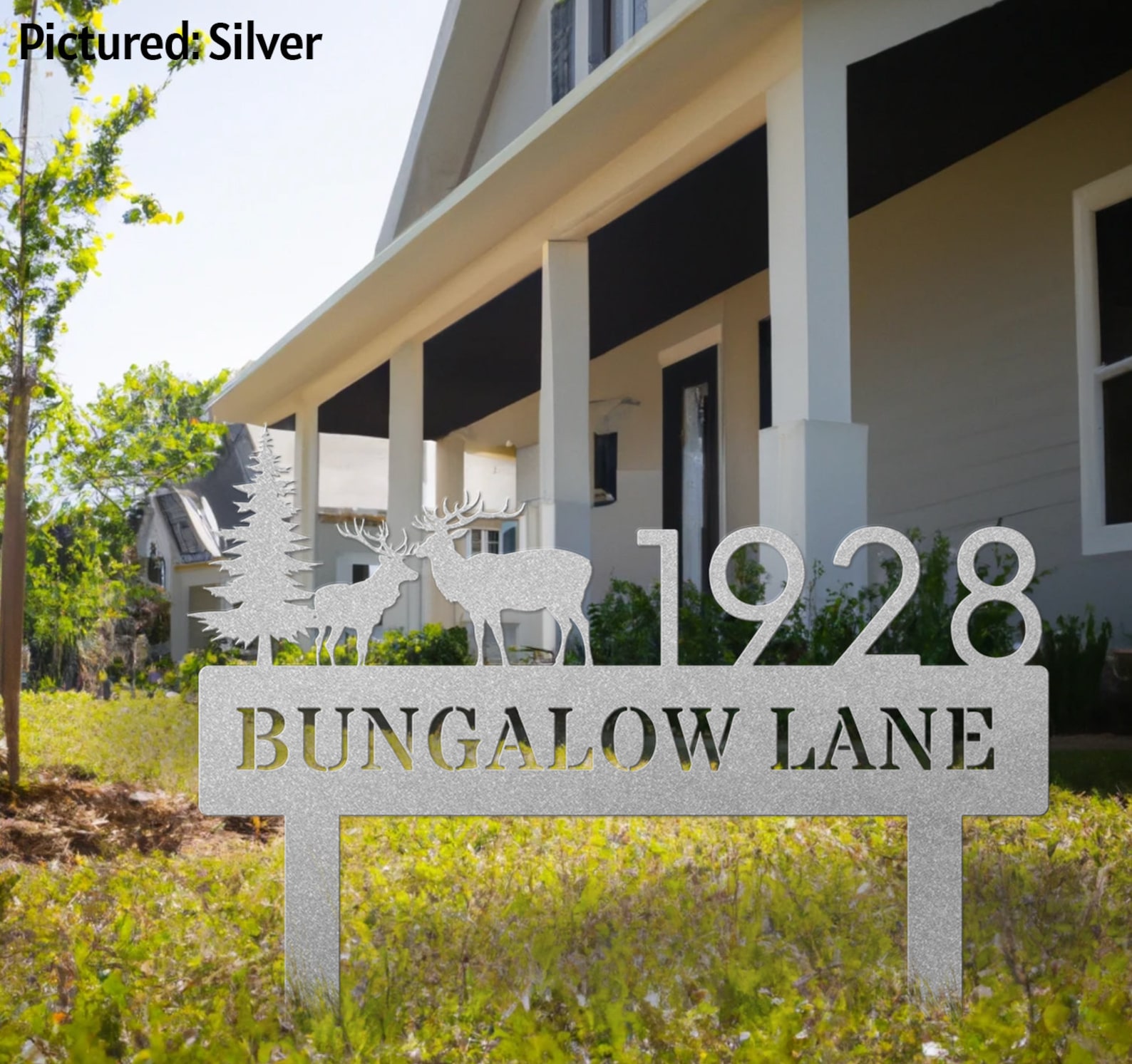 Metal Address SigntStreet Number SignstGround With StakestCustom House NumbertSigns for Front LawntMountain Cabin DecortDeer Moose DecortVintage AirBNB DecortAddress Sign Elktlarge black whitetcopper red silvertfront door porchtFamily Name Rock