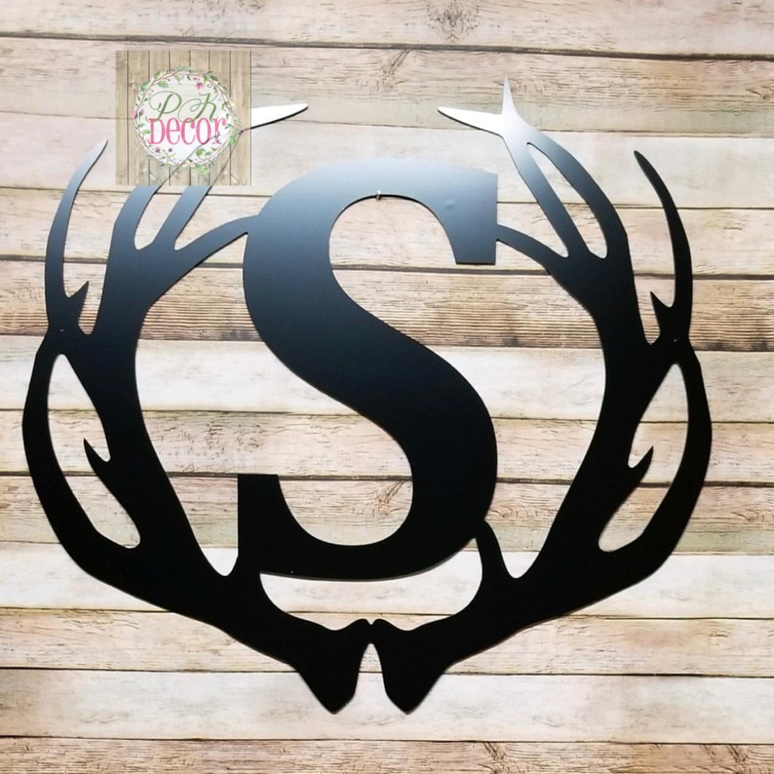 Be the first to review “Metal Antler Initial Door Hanger – Deer Man Cave Decor”
