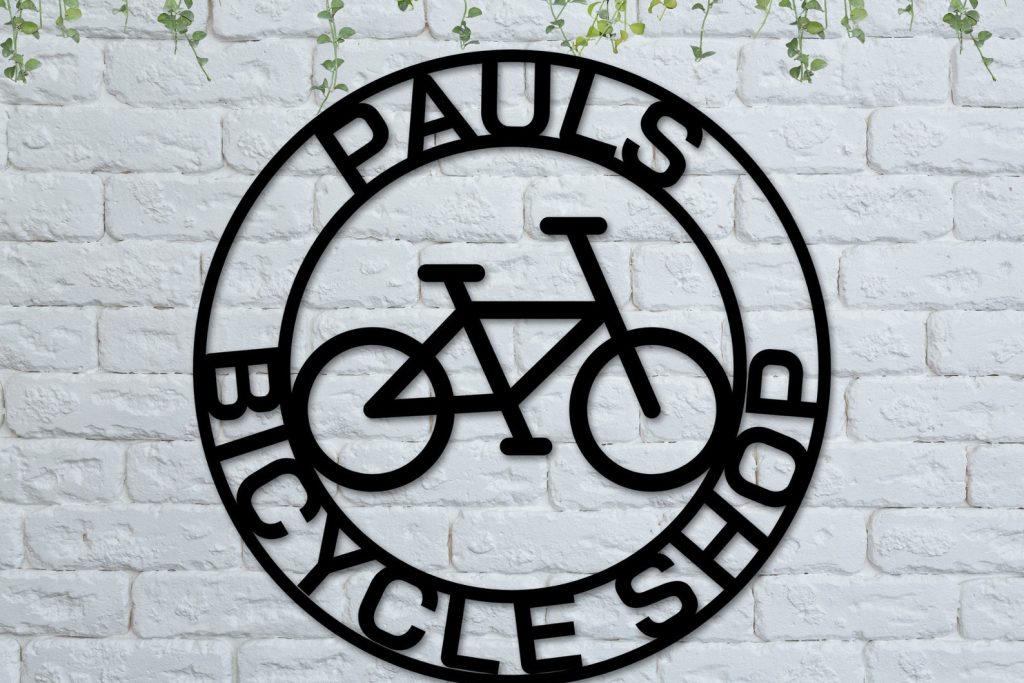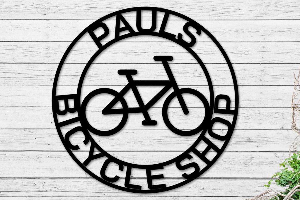 Metal Garage Sign: Custom Bicycle Sign, Workshop Decor