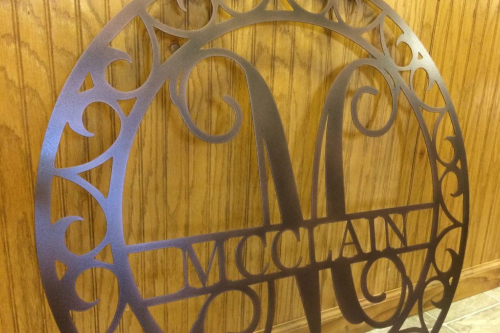 Made of 16 GA Steel and powder coated the color of your choice. If you prefer any other color other than what is listed, please select Other? Specify and let us know at checkout OR message us before purchasing to discuss your options. We can powder paint this in most any color so do not hesitate to ask. You MUST specify letter, AND color at checkout – if no color is specified you will receive your monogram in BLACK.