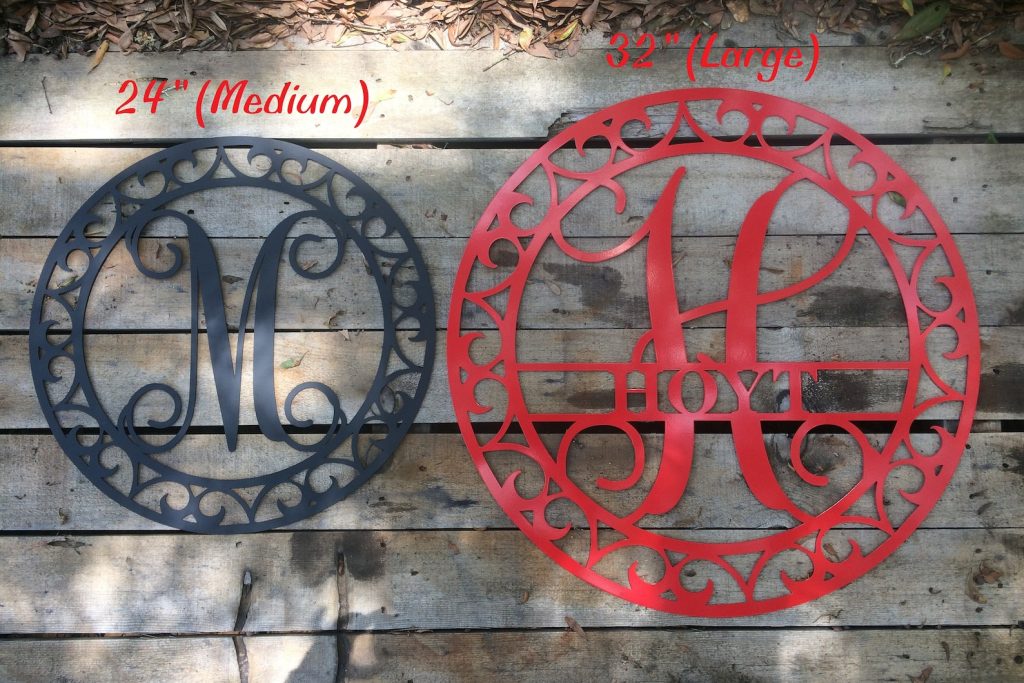 This listing is for ONE 24" diameter Metal Single Letter Monogram with Scroll Border Wall/Door Hanger. This is laser cut and made to order. A perfect addition to any indoor/outdoor home decor!