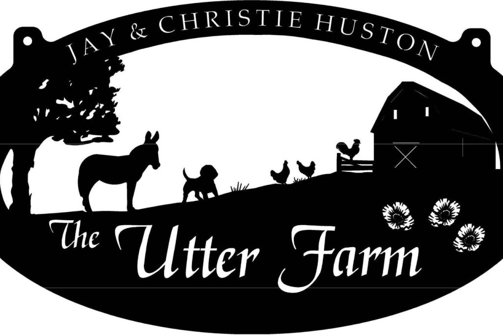 Rustic, personalized metal sign with farmyard scene . Measures 36" across. . Makes a very attractive entrance sign.Incl with the price is customizing with your name.Our finish is a baked on powder coat for a very long lasting durable finish.