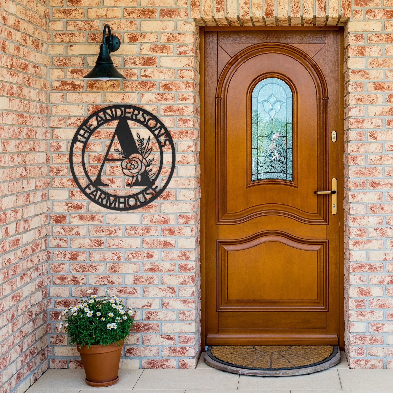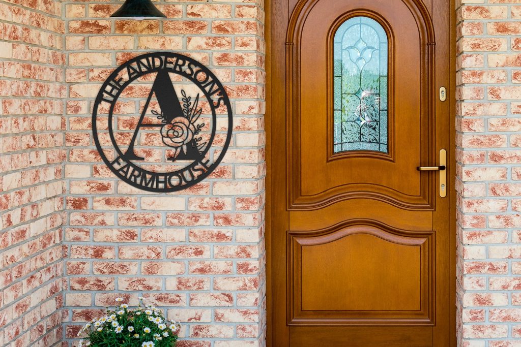 Custom Metal Sign that you can personalize to read anything on the top and bottom, makes it a perfect housewarming or wedding gift. The floral initial in the middle makes it a modern and beautiful wall art to hang on the door or on the gate.