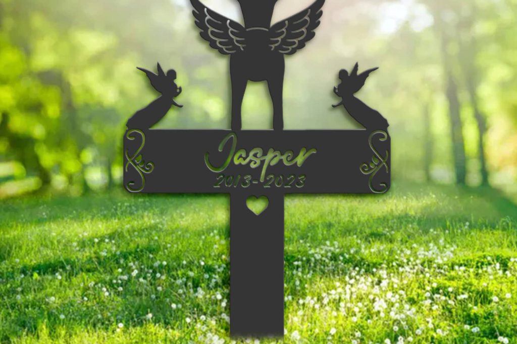 Miniature Pinscher Memorial Stake – Custom Metal Angel Wing Sign
