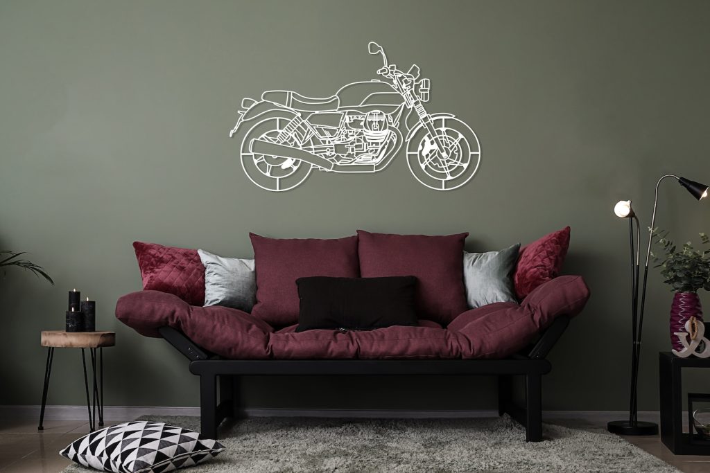 Moto Guzzi V7 Stone Metal Wall Art, Motorcycle Silhouette, Garage Wall Decor, Motorcycle Line Art, Best Gift for Him, Moto Guzzi Wall Sign
