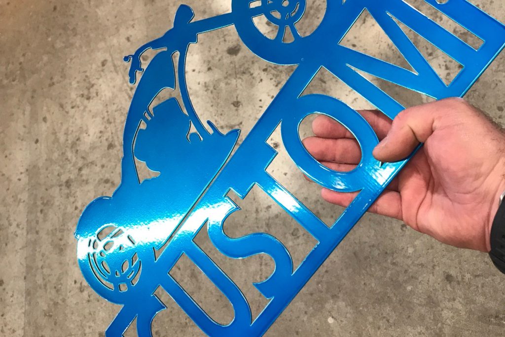 Candy colors and transparent colors are fully transparent. Any flaws that exist in the metal underneath the color will show through the color and be visible. This includes scratches, blemishes, cut marks, burns from the cutting process, etc.