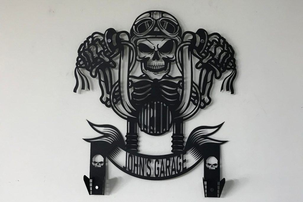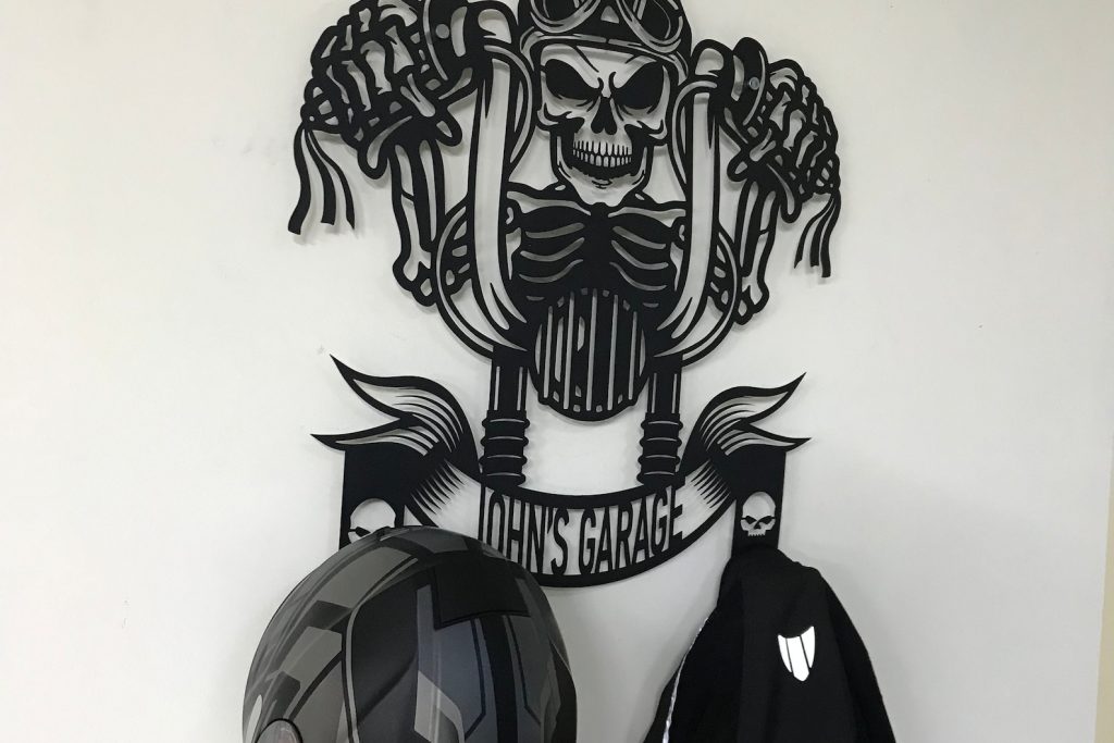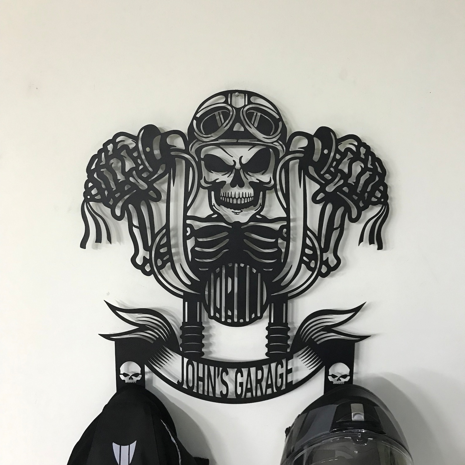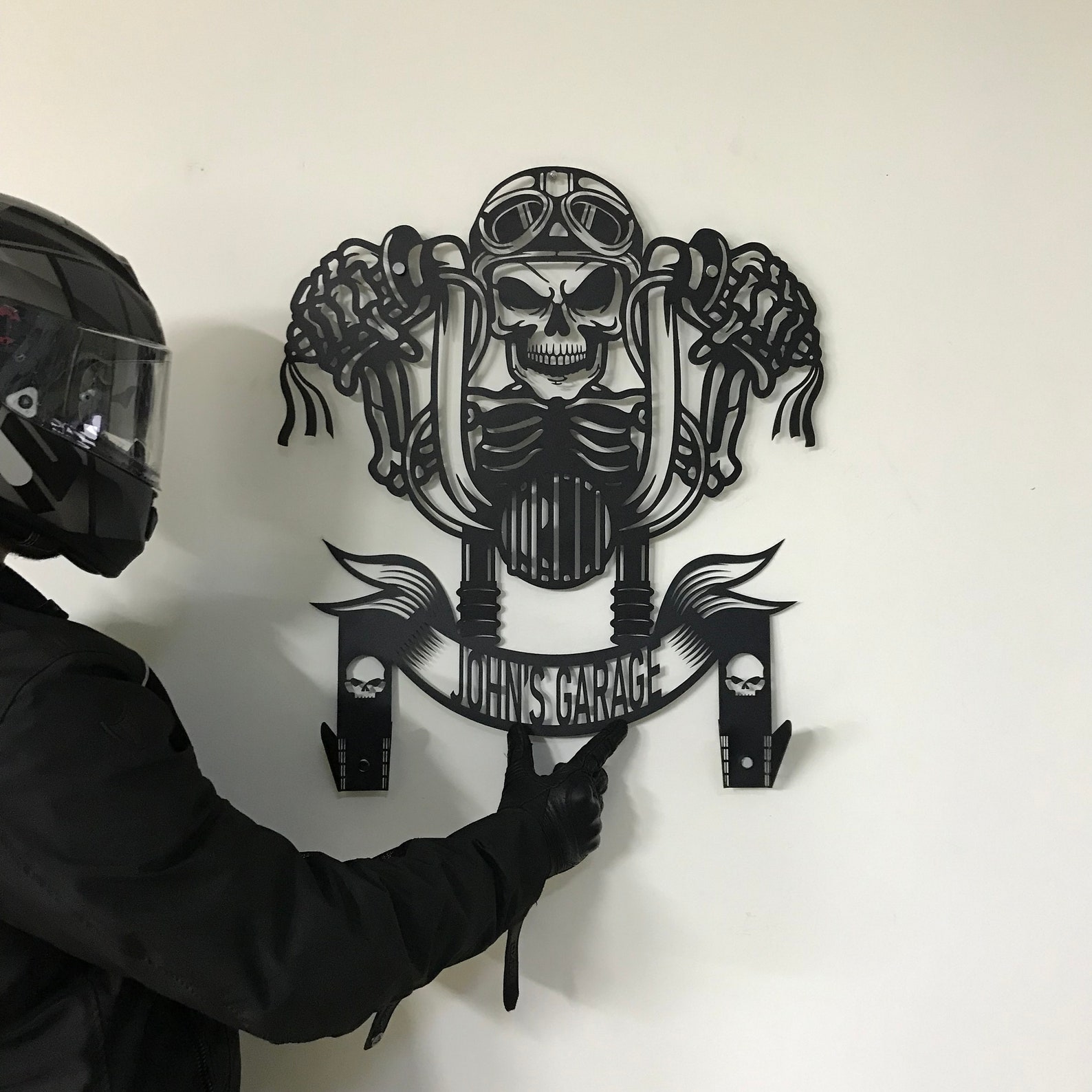 Be the first to review “Motorcycle Helmet Sign – Custom Metal Skull Holder”