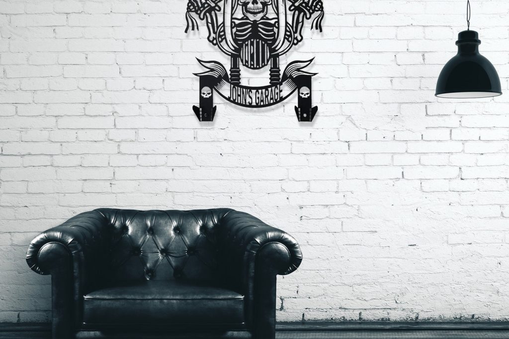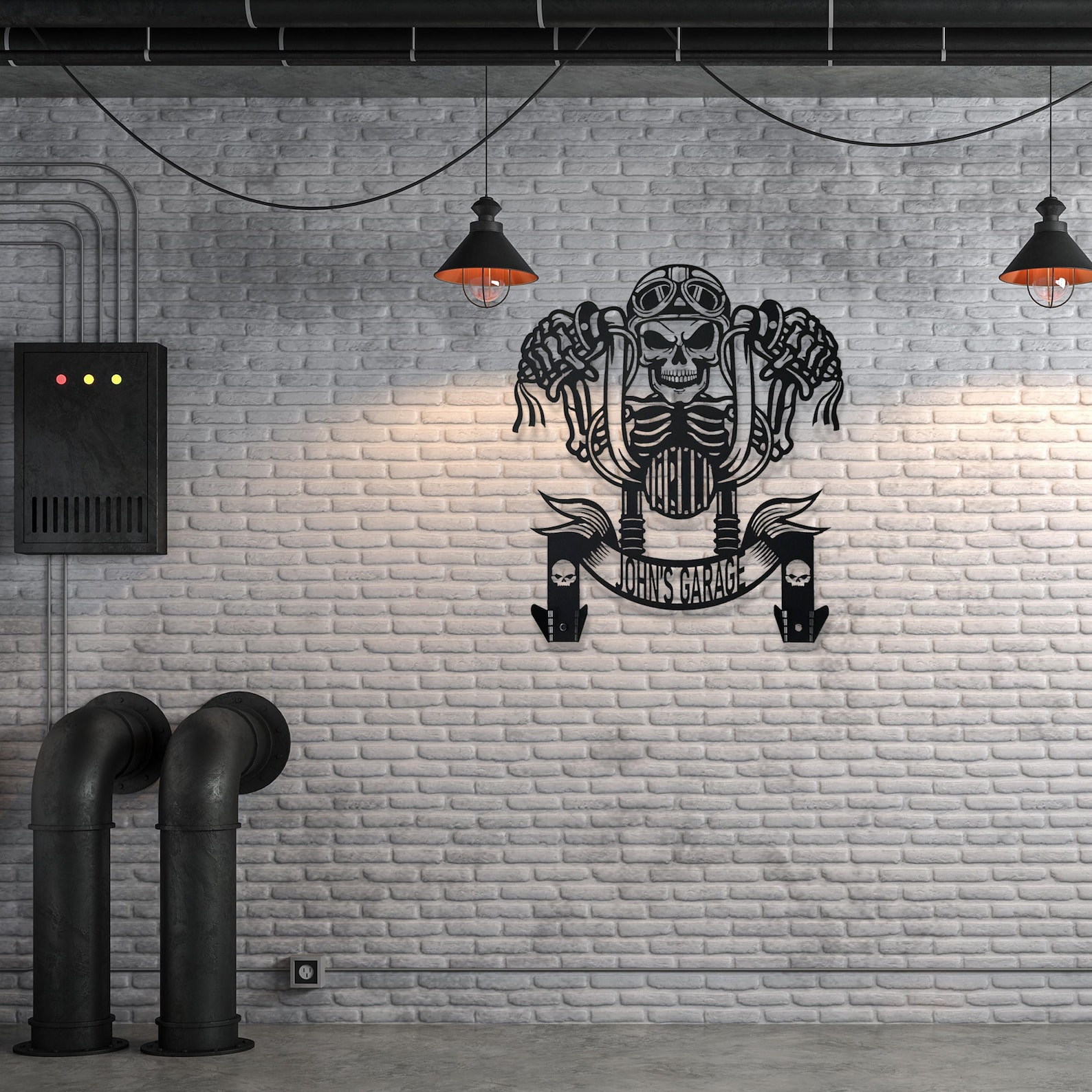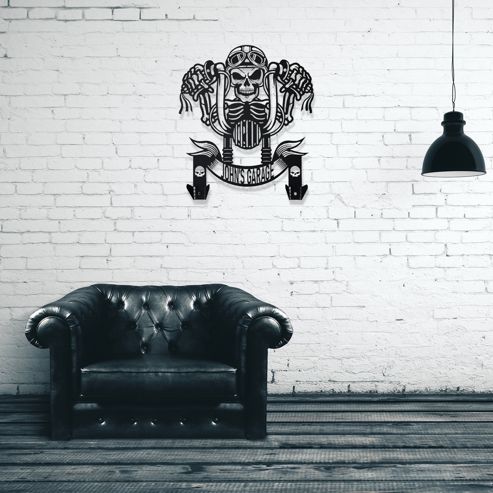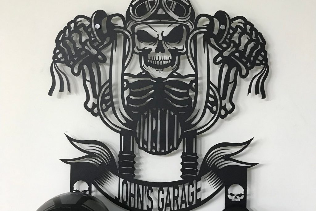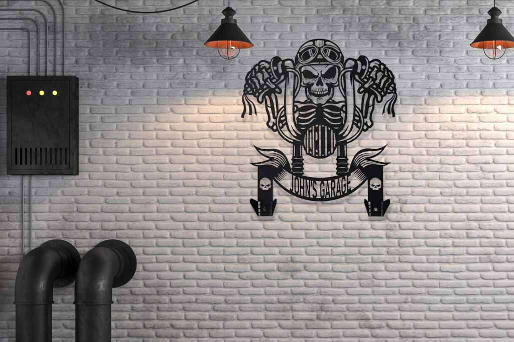 Be the first to review “Motorcycle Helmet Sign – Custom Metal Skull Holder”