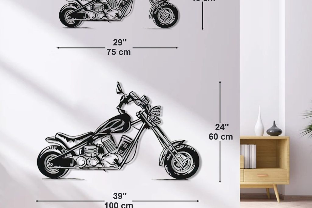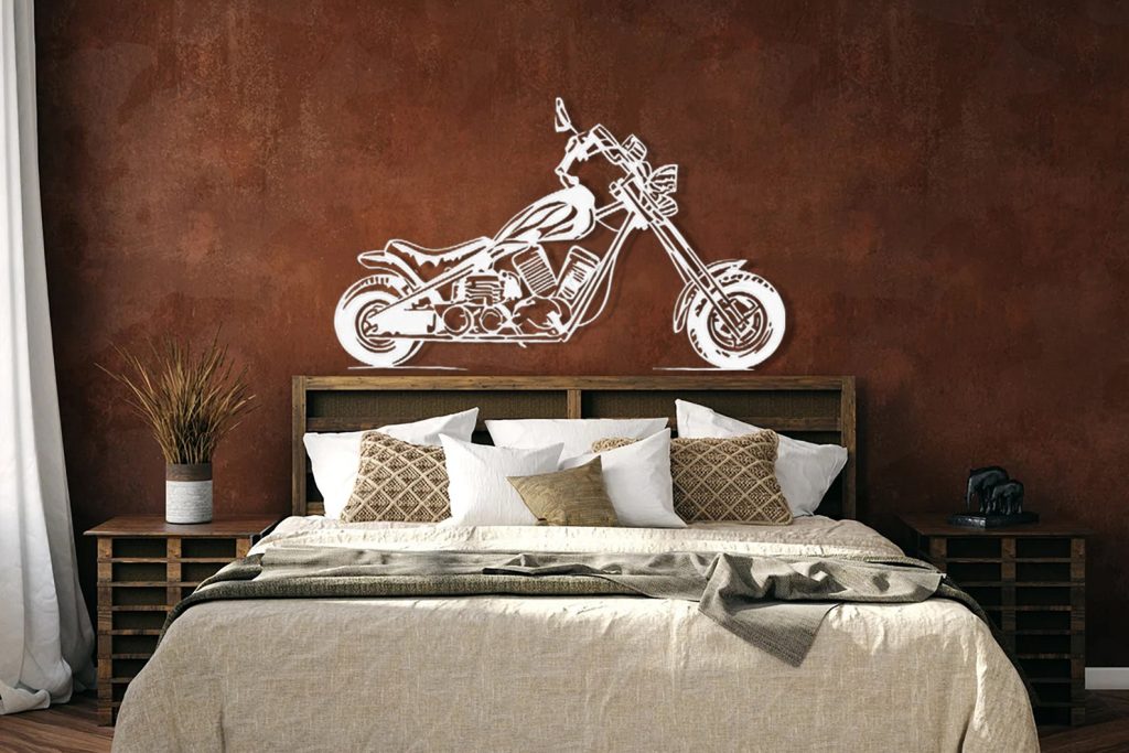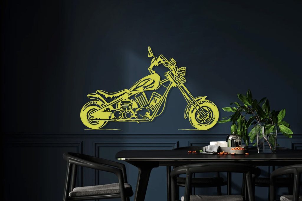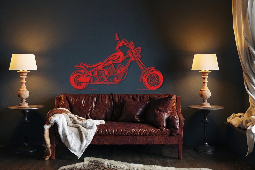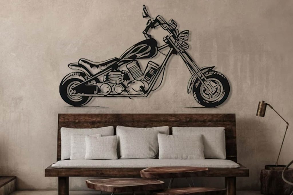 – Metal striped wall decor featuring a Motorcycle Metal Wall Art.