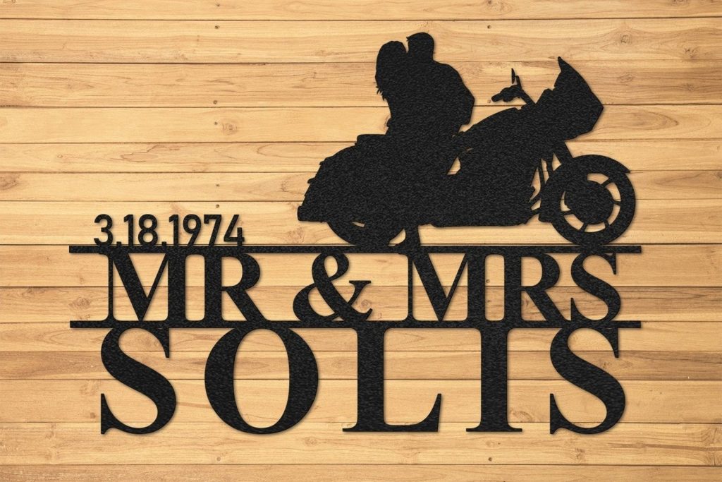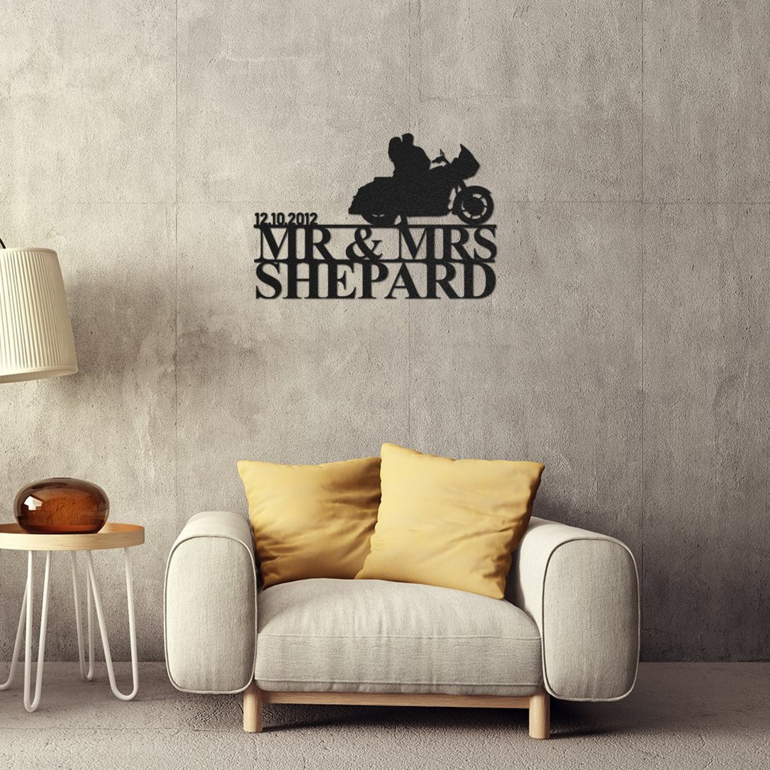 Motorcycle Wedding Sign – Personal Metal Couple Gift