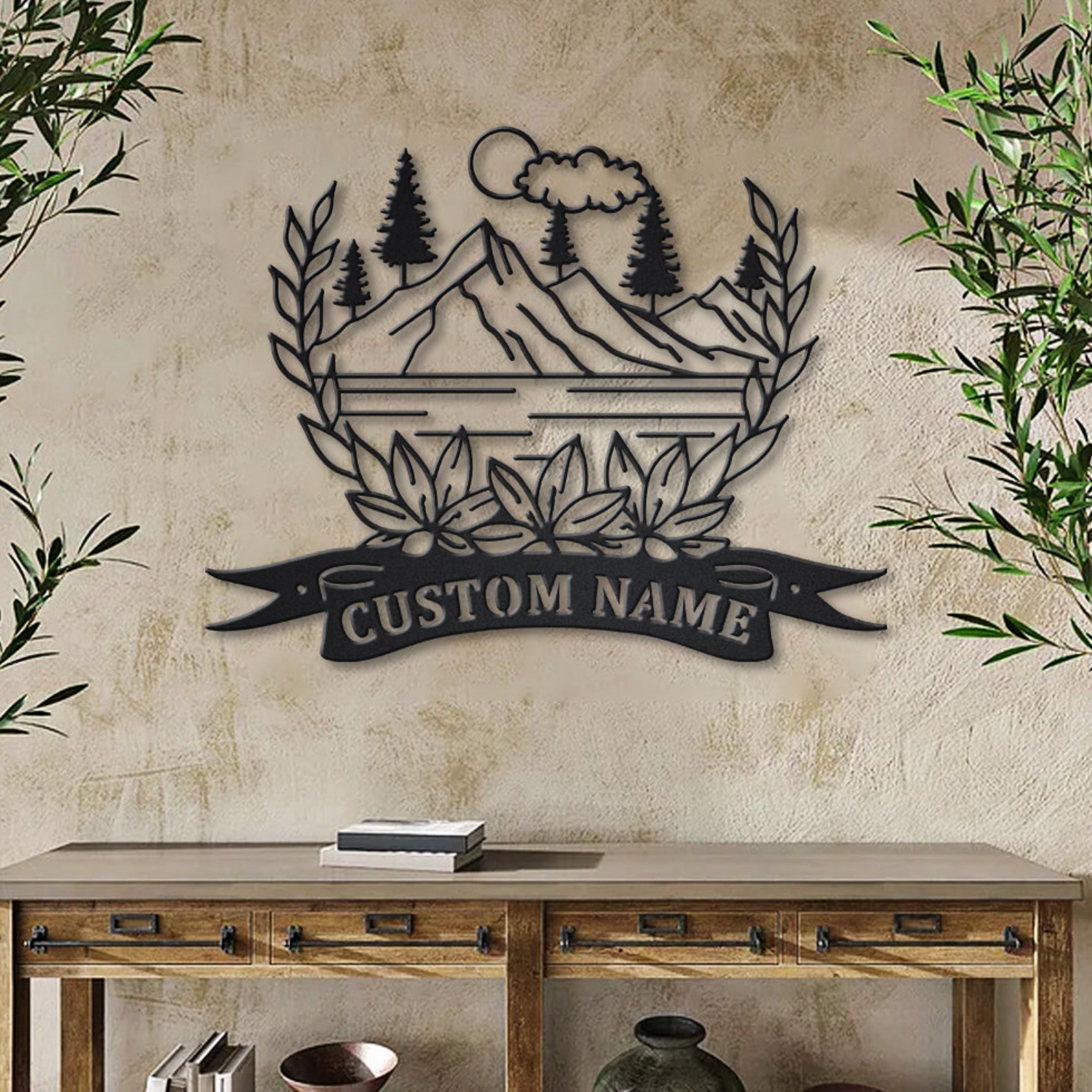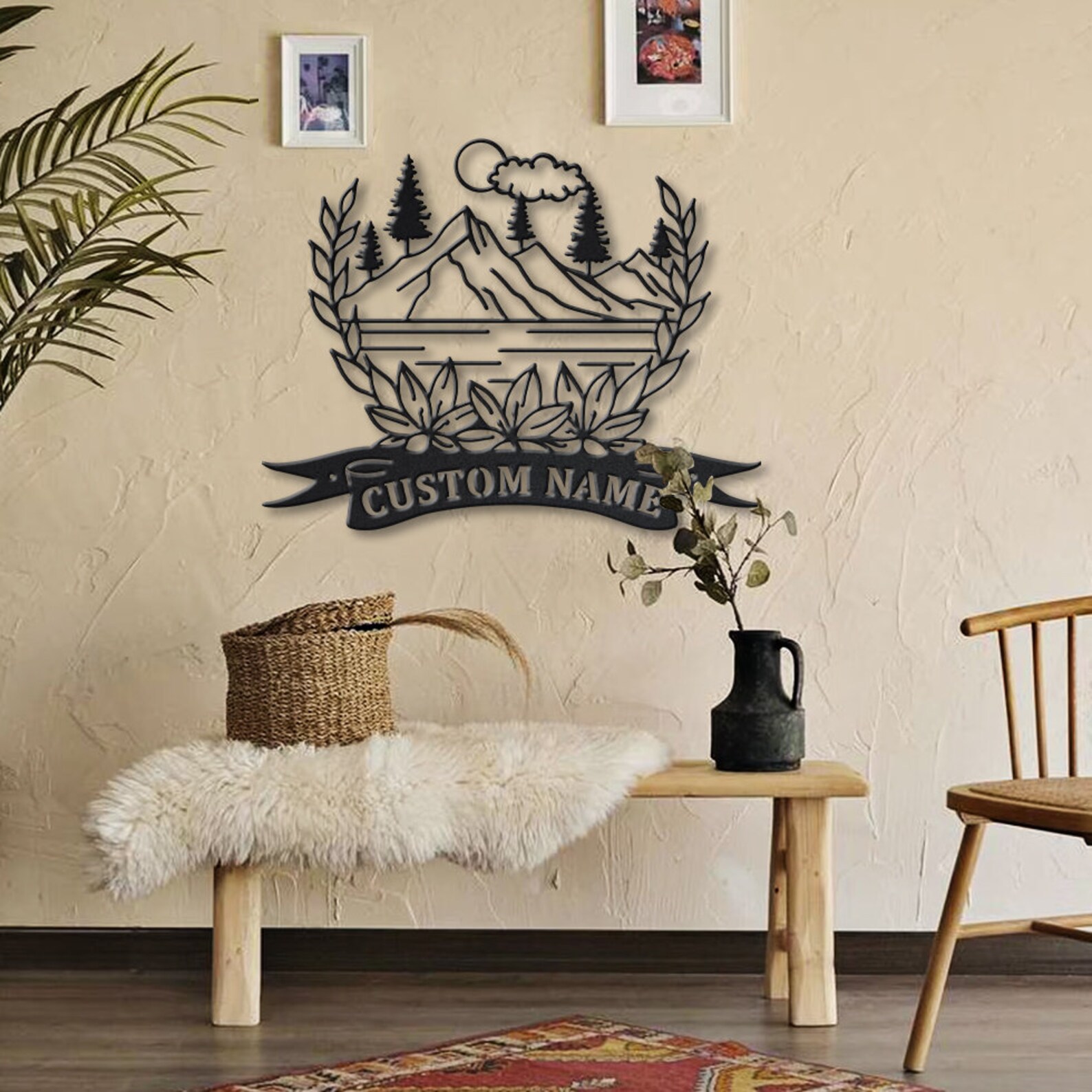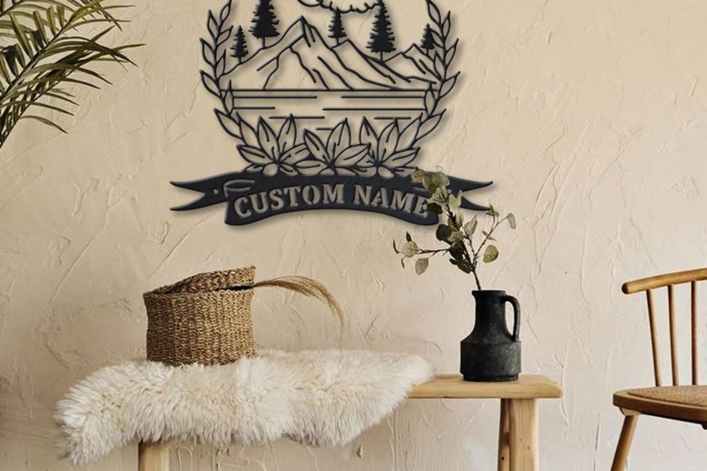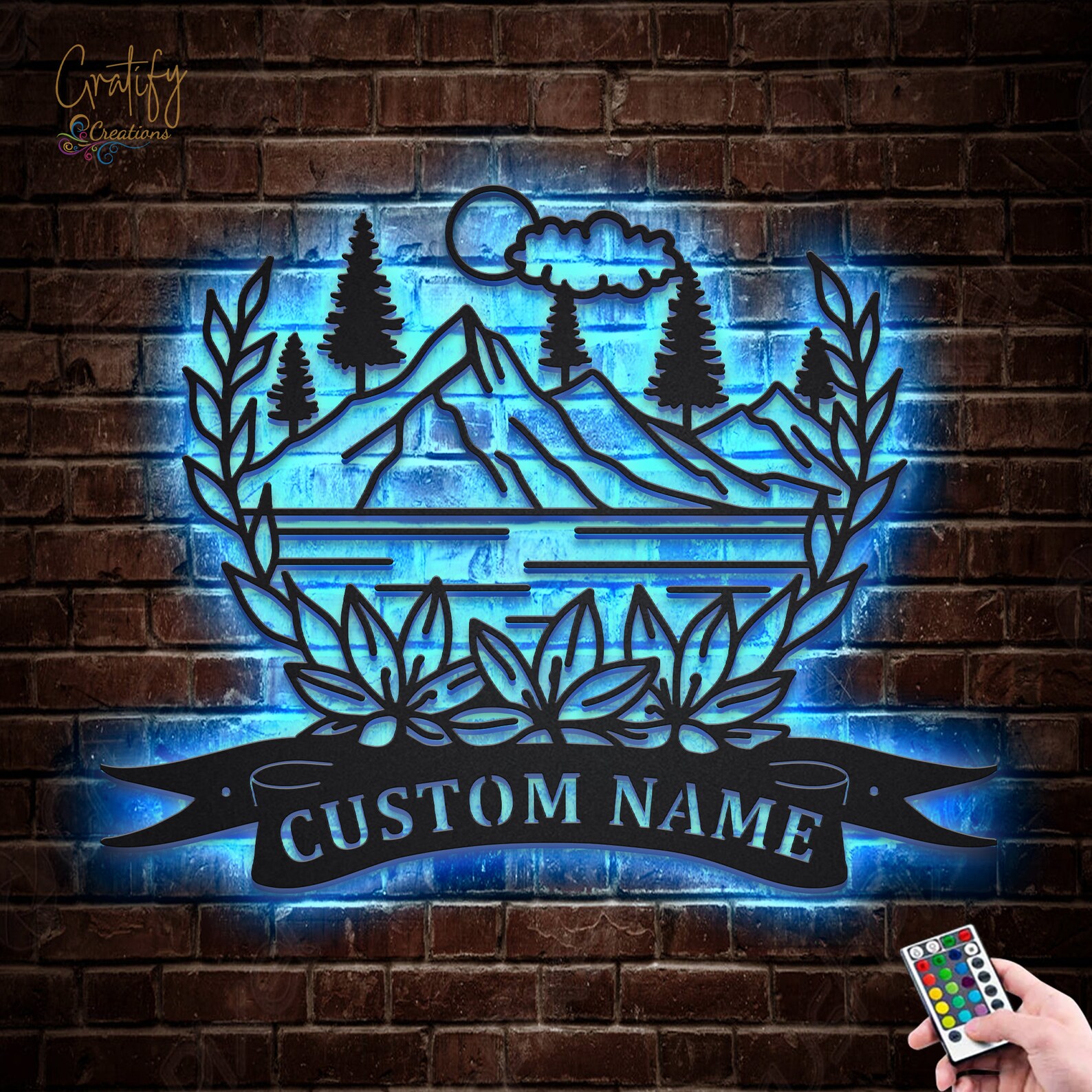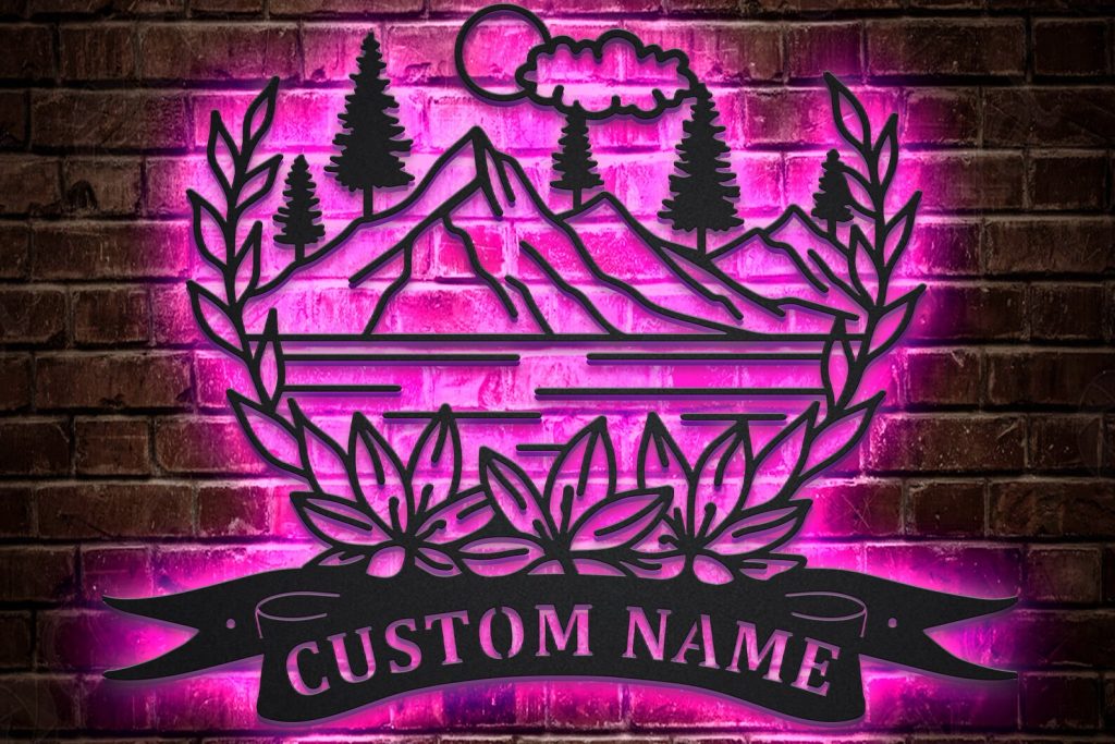 Mountain and Flower Metal Sign – LED Neon Wall Decor