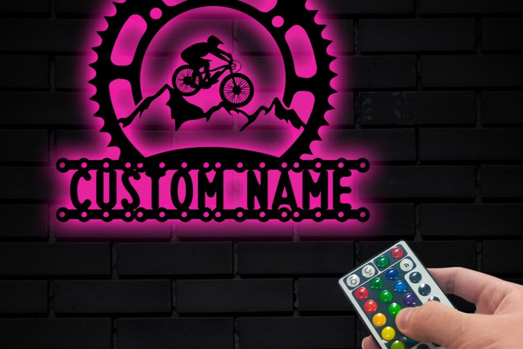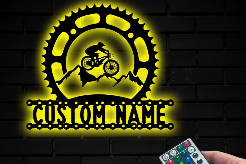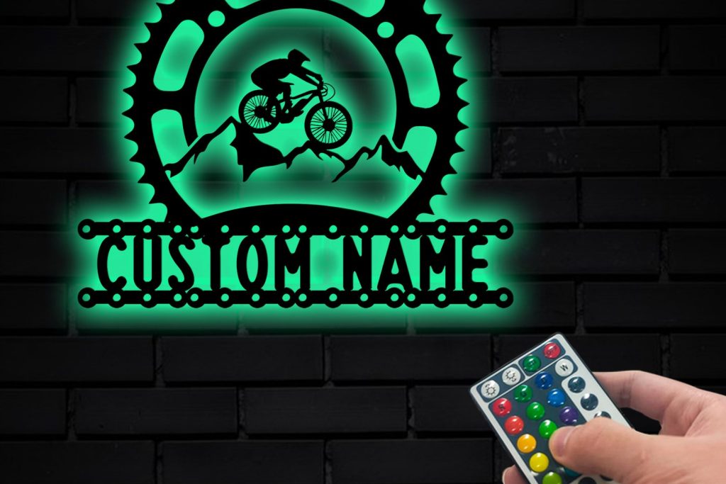 Mountain Bike Metal Art with LED, Personalized Sign