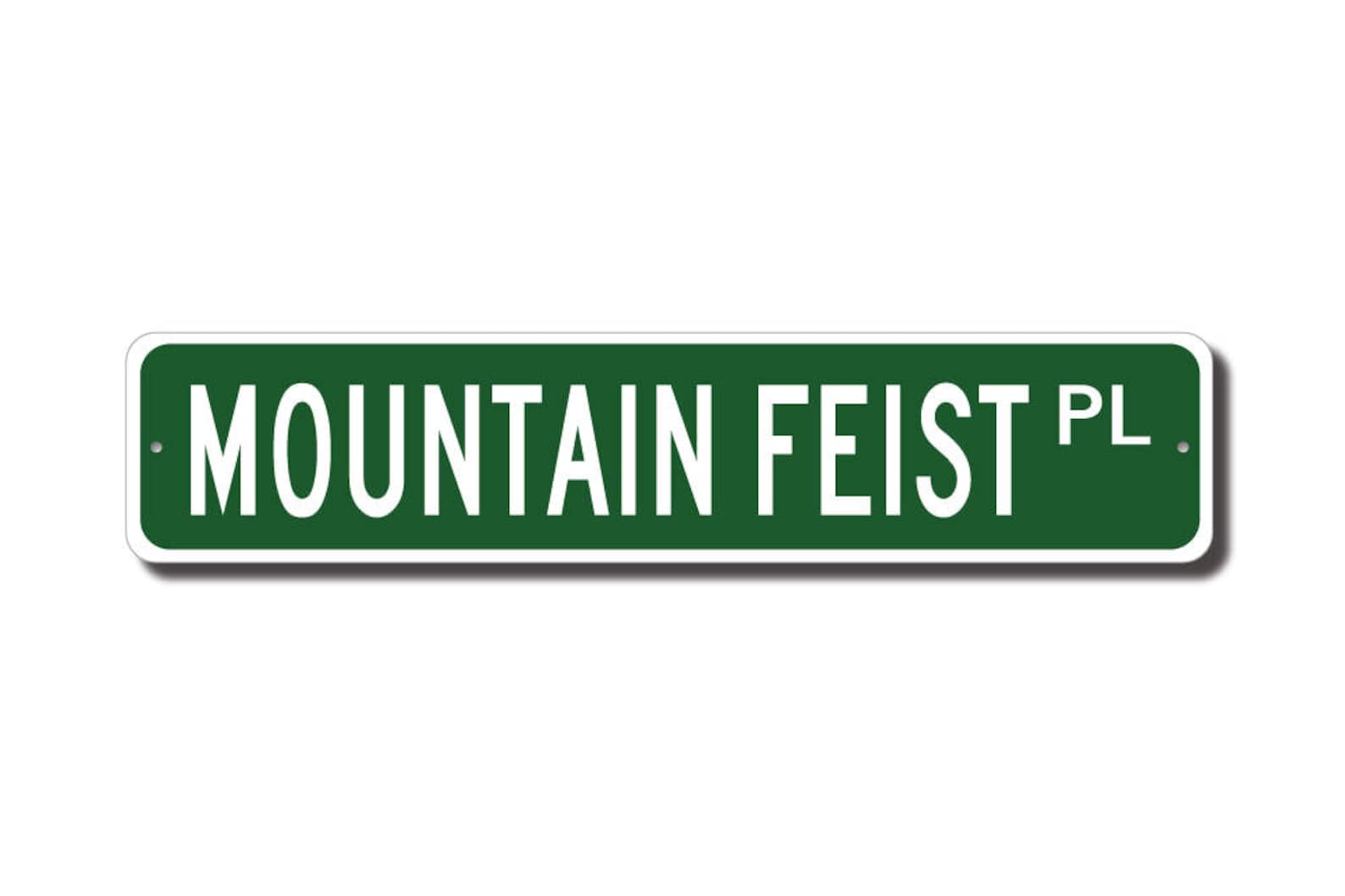 Mountain Feist lovers check out this awesome street sign! This will make the perfect piece for any Mountain Feist lover or Mountain Feist cave. Made of premium aluminum it will stand the test of time. This sign will look great in any room, garage, barn or office! Get this sign for your favorite friend that loves a Mountain Feist!