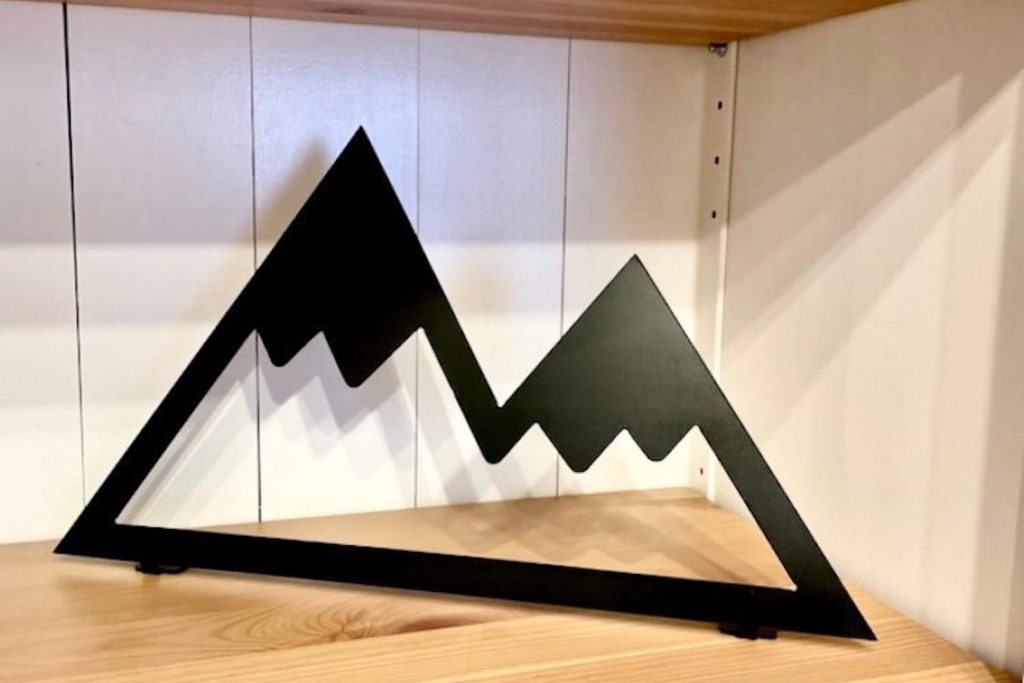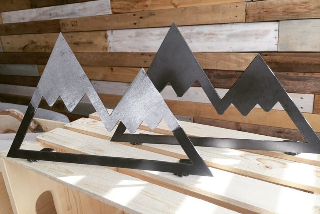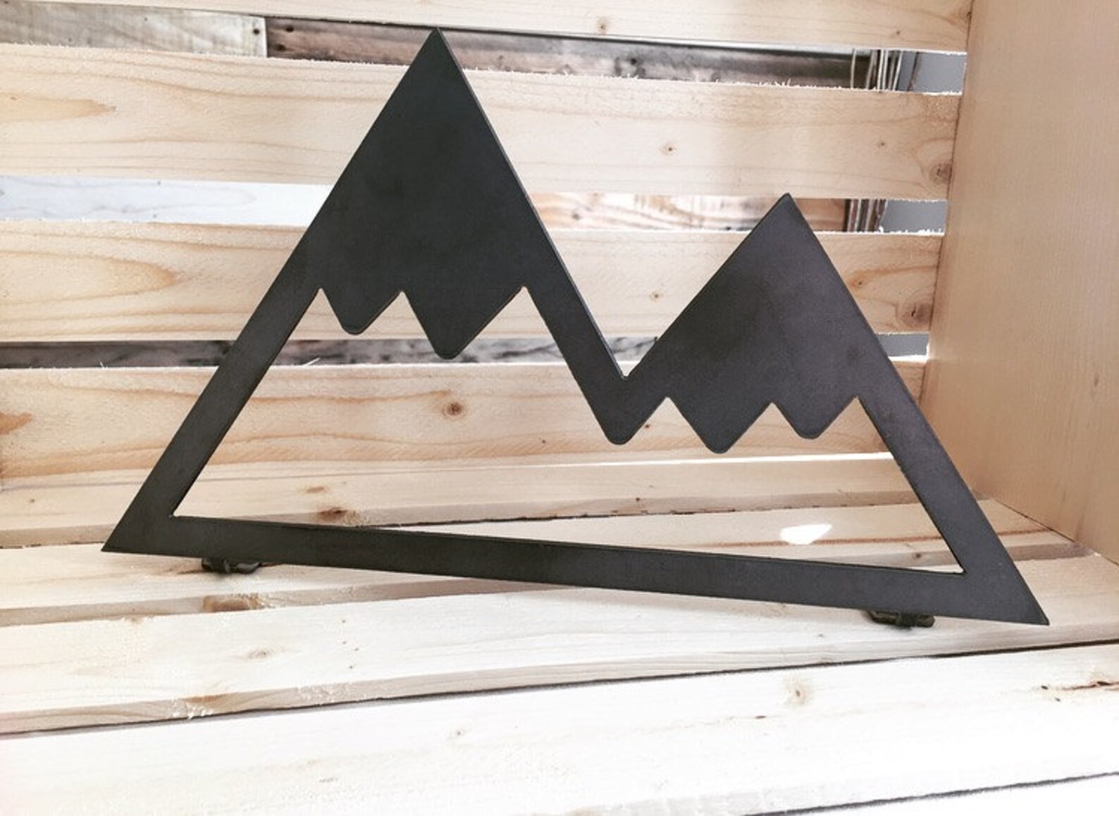 This listing is for one metal mountain range handmade from high quality durable 14 gauge steel and is available in 4 finishes: Raw metal, semi- brushed peaks, painted black or gold.
