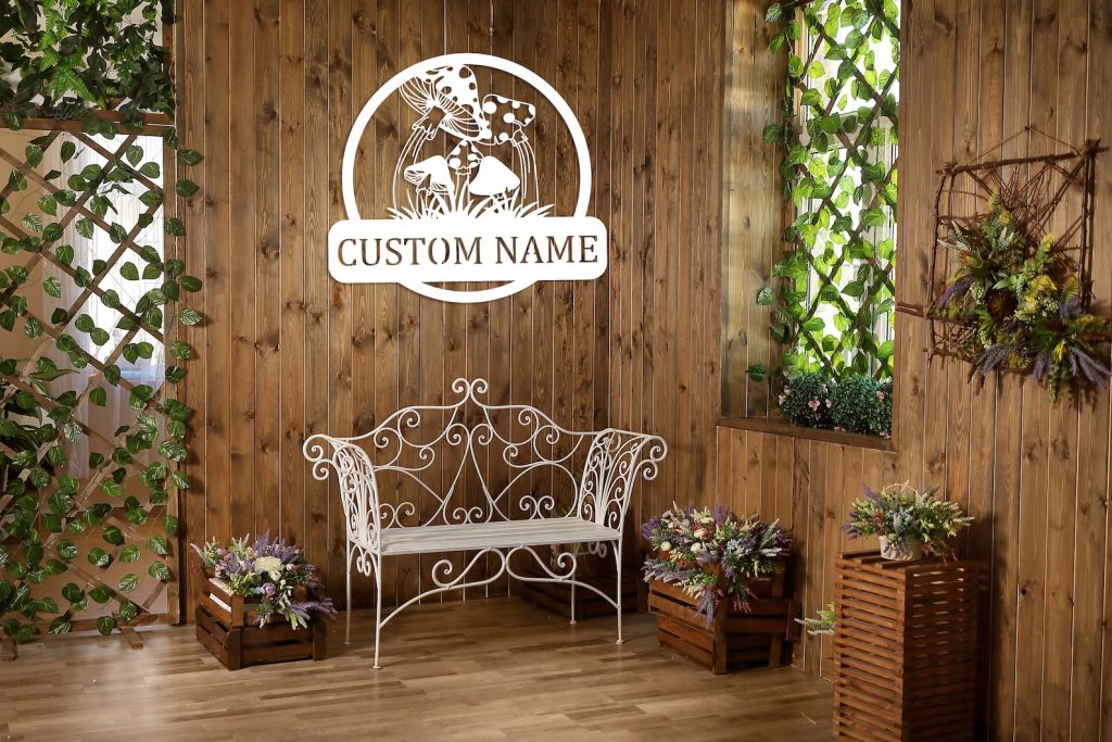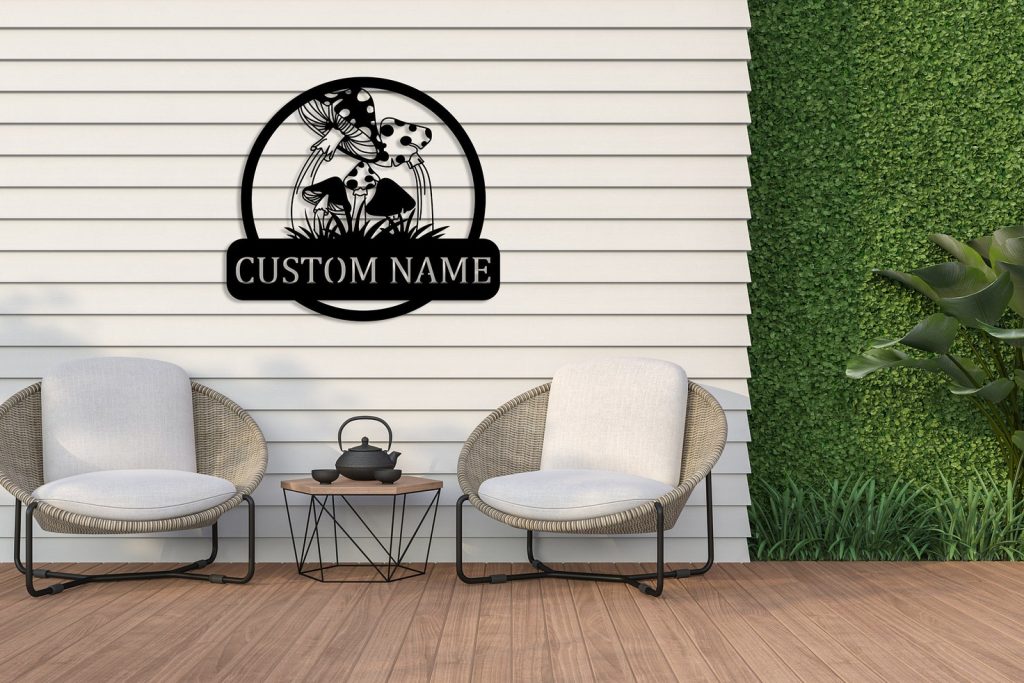 Mushrooms Wall Art – Custom Metal Monogram Sign