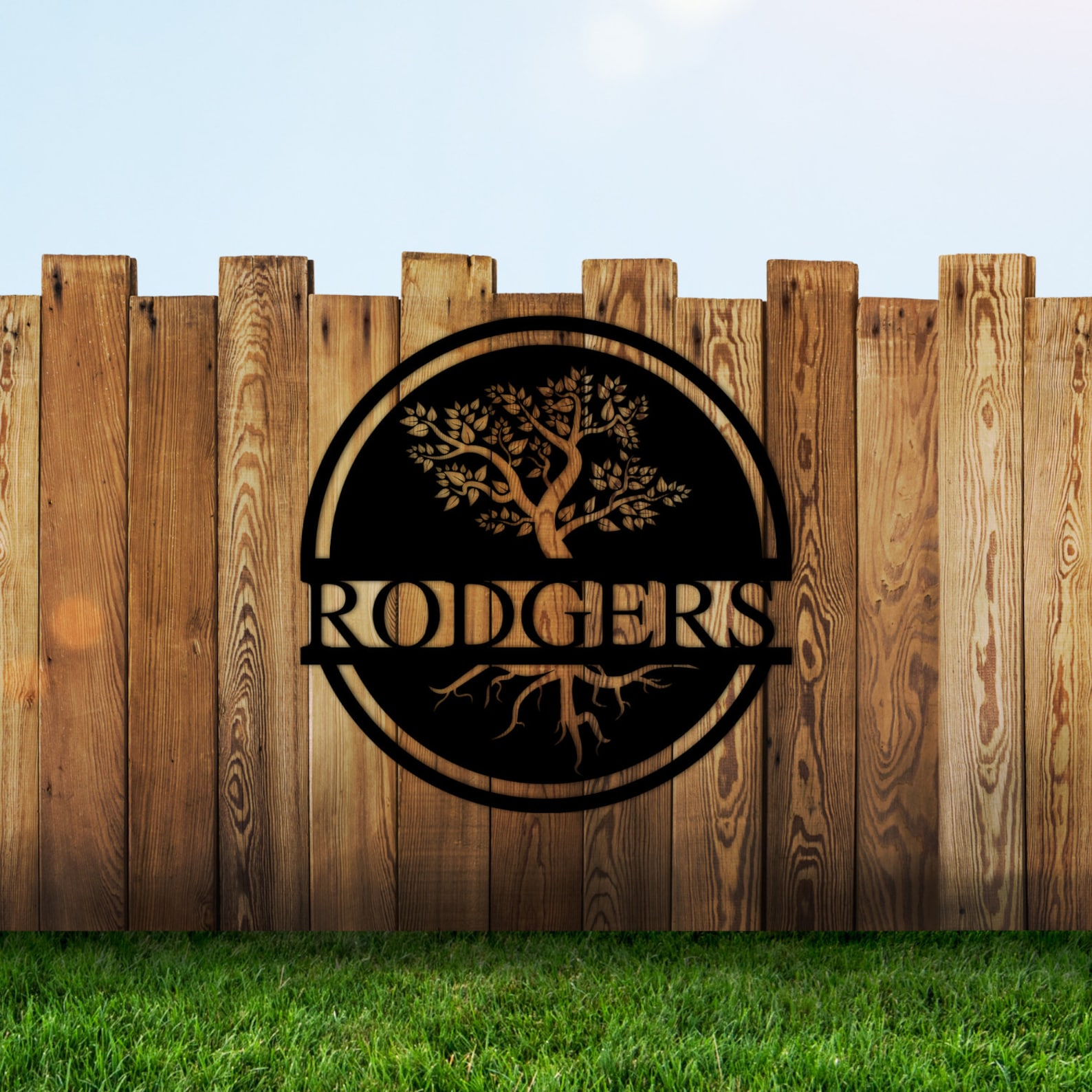 Oak Tree Sign – Personal Metal Last Name Decor, Gift