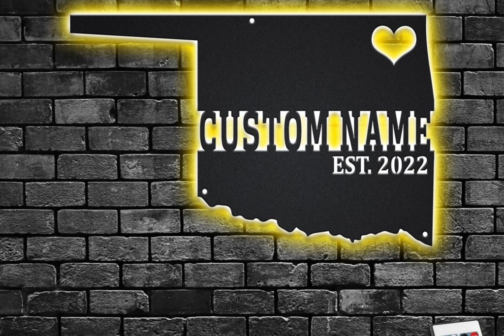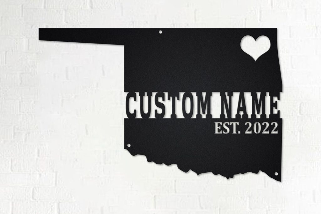 Oklahoma Map Metal Sign: Custom State Name Sign