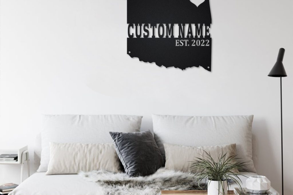 Be the first to review “Oklahoma Map Metal Sign: Custom State Name Sign”