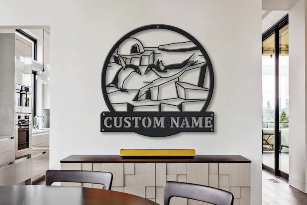 Penguin Metal Wall Art with LED – Custom Bird Decor