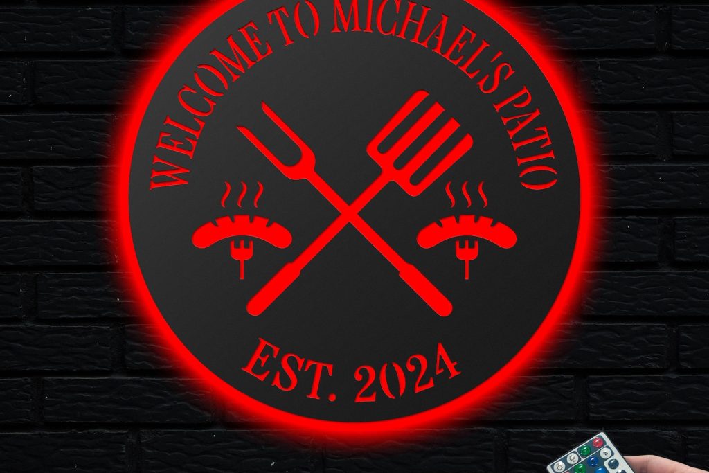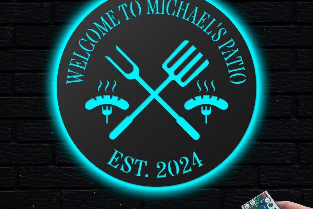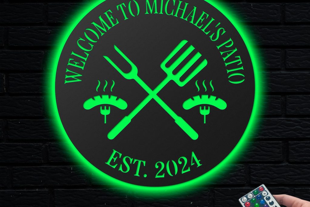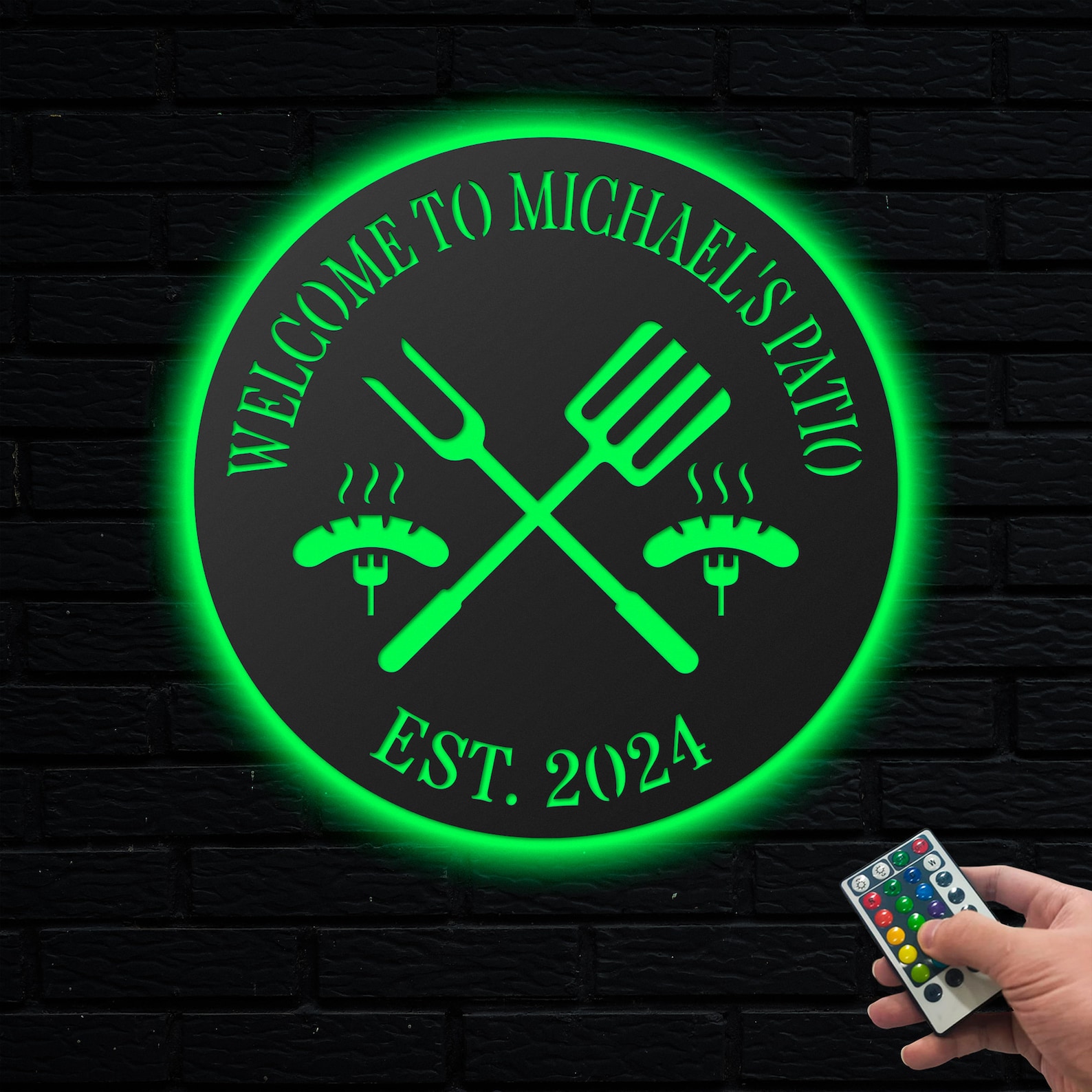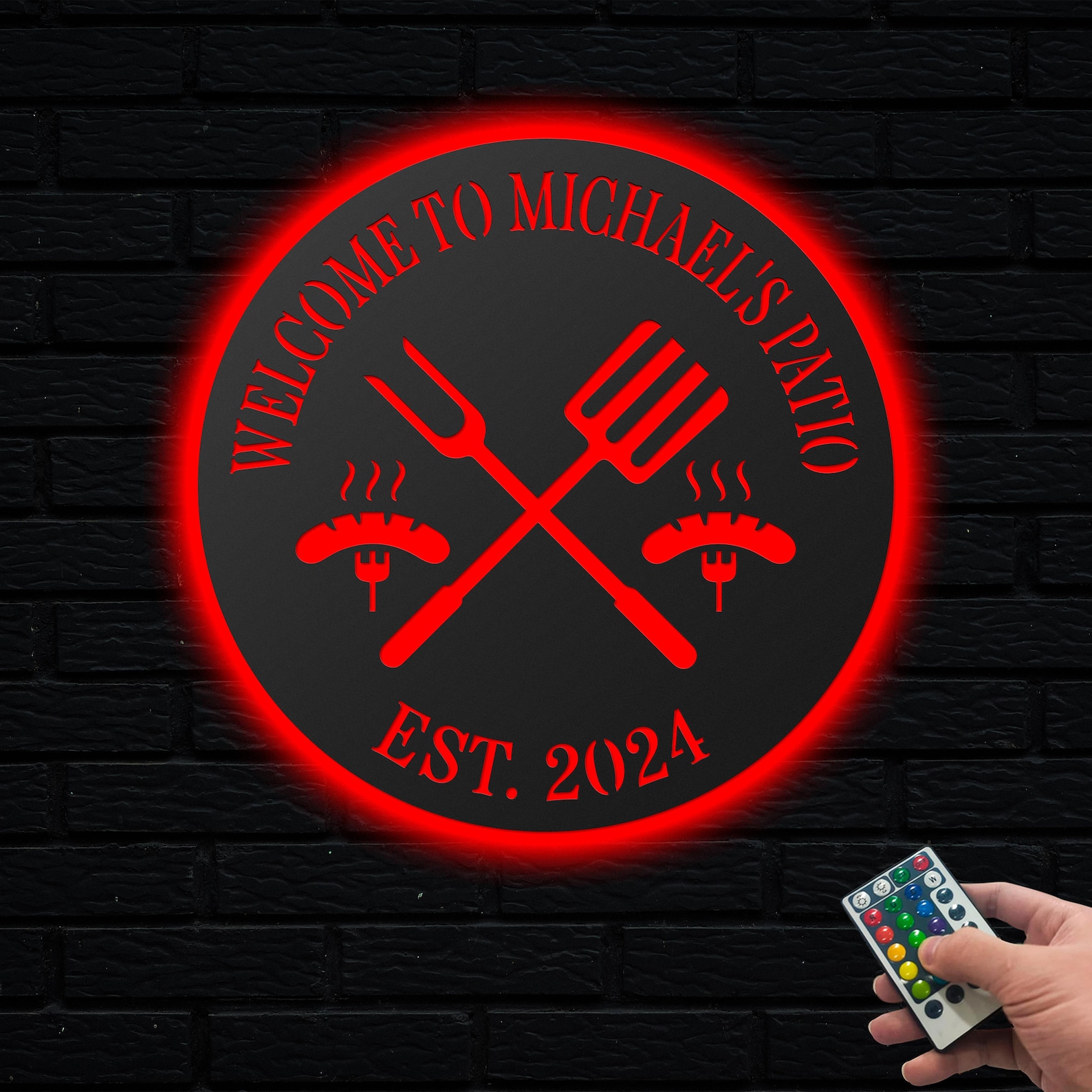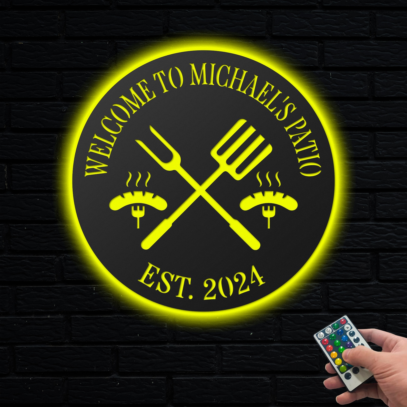 Be the first to review “Personalized Backyard Patio Grill Metal Wall Art – LED Light”
