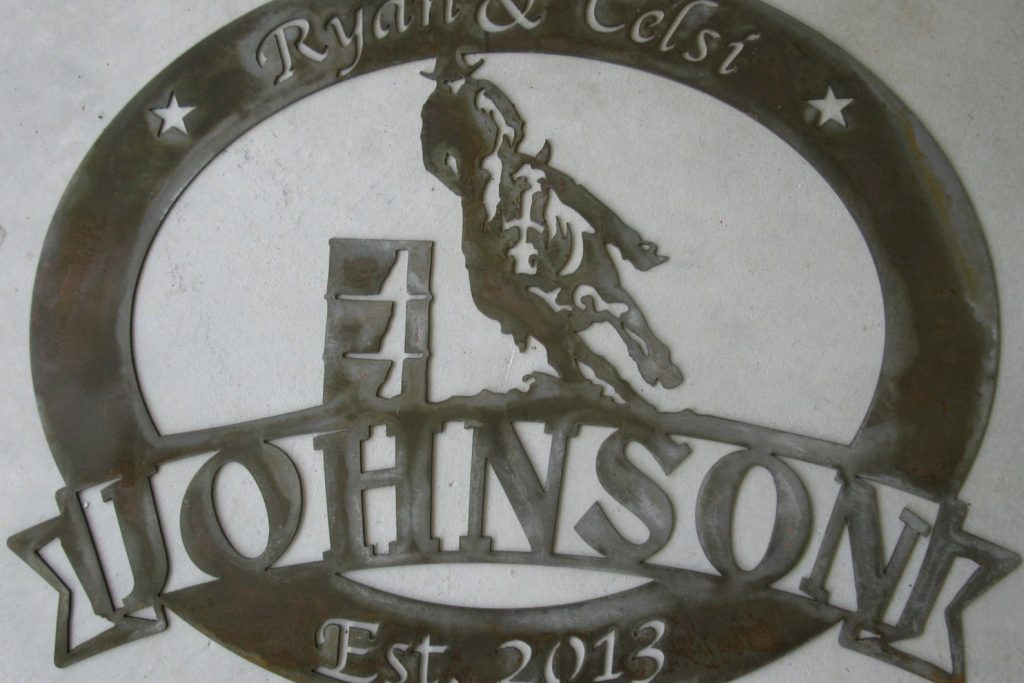 Metal laser cut sign personalized with your name ,finished in gorgeous, rustic, acid washed with clear coat, or black powder coat finish measures 26"9;".