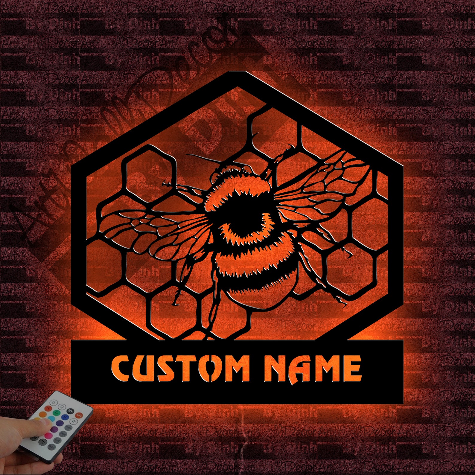 Be the first to review “Personalized Bee Metal Wall Art – LED Light, Honeycomb Decor”