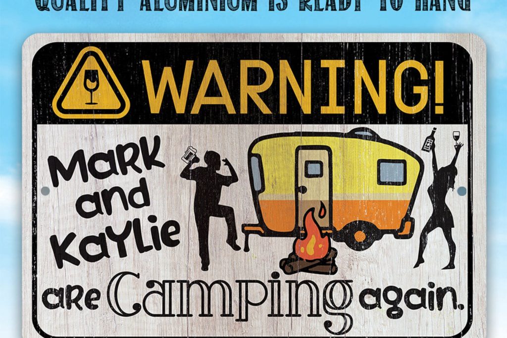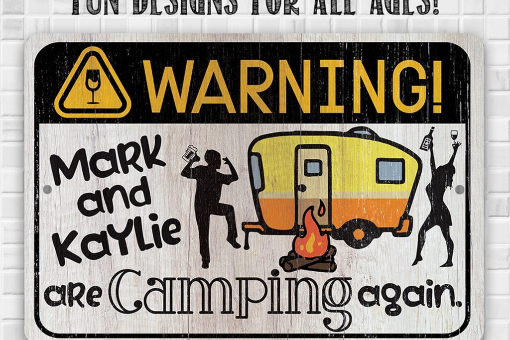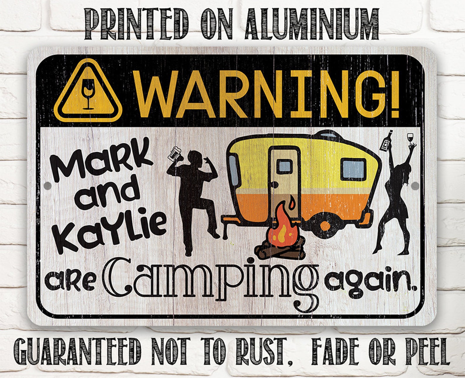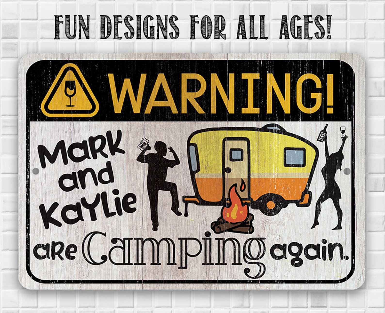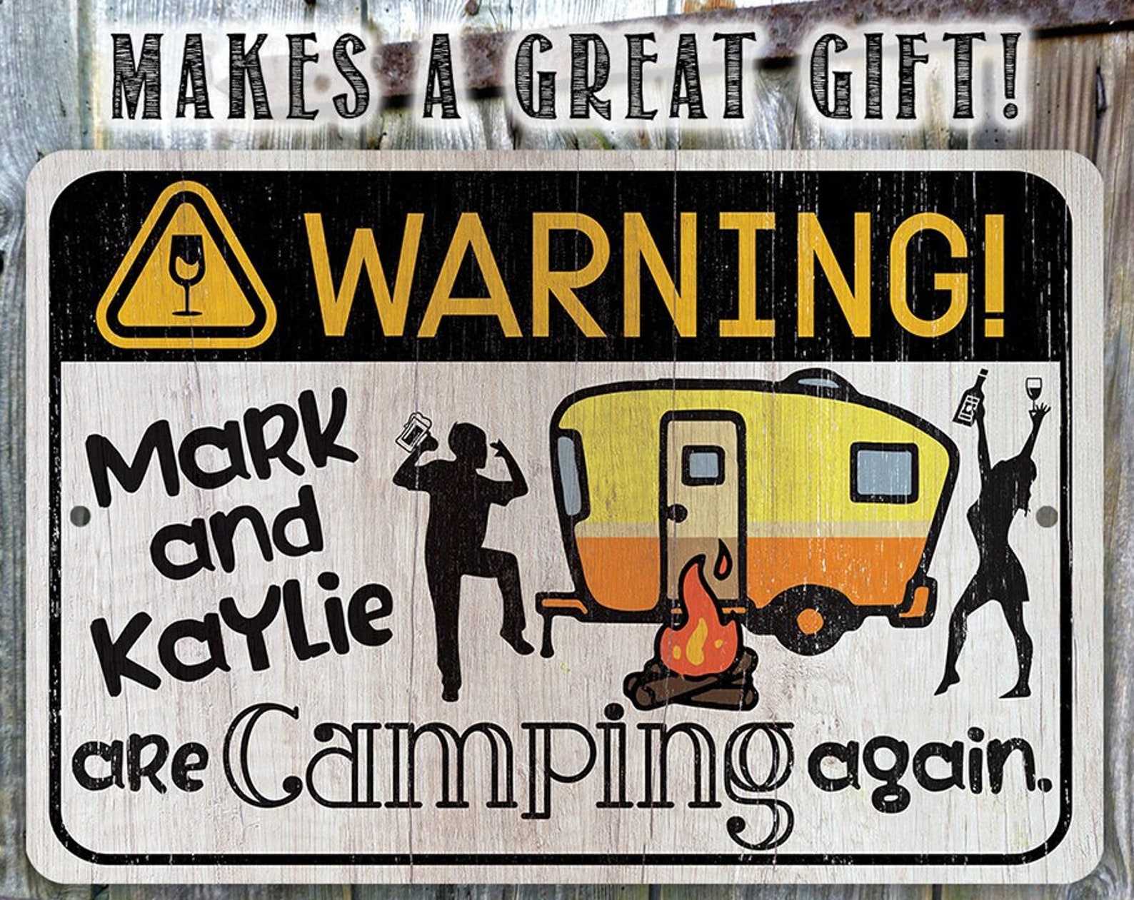 Personalized Metal Sign – Warning! Are Camping Again – 8" x 12" or 12" x 18" -Tin- Use Indoor/Outdoor – Gift for Campers & Campsite/RV Decor