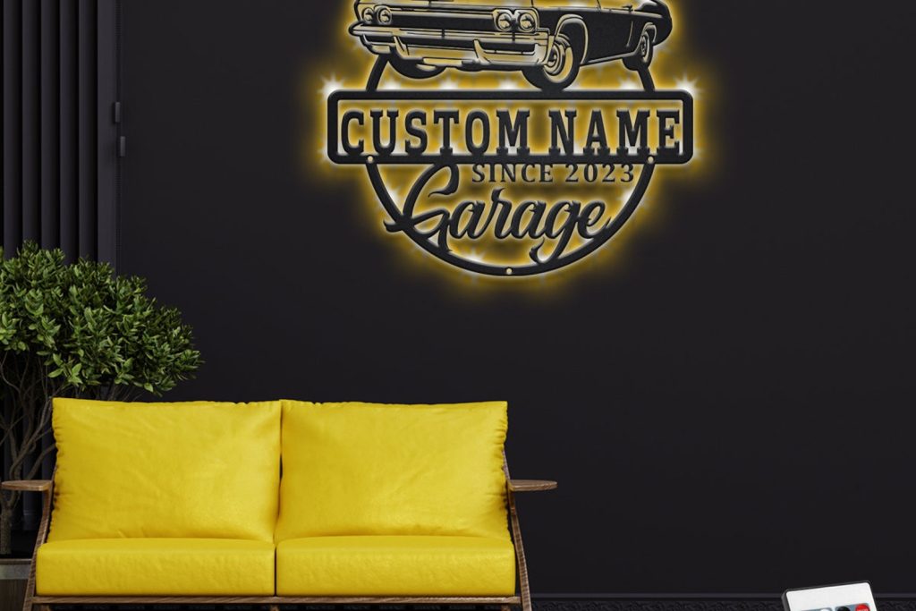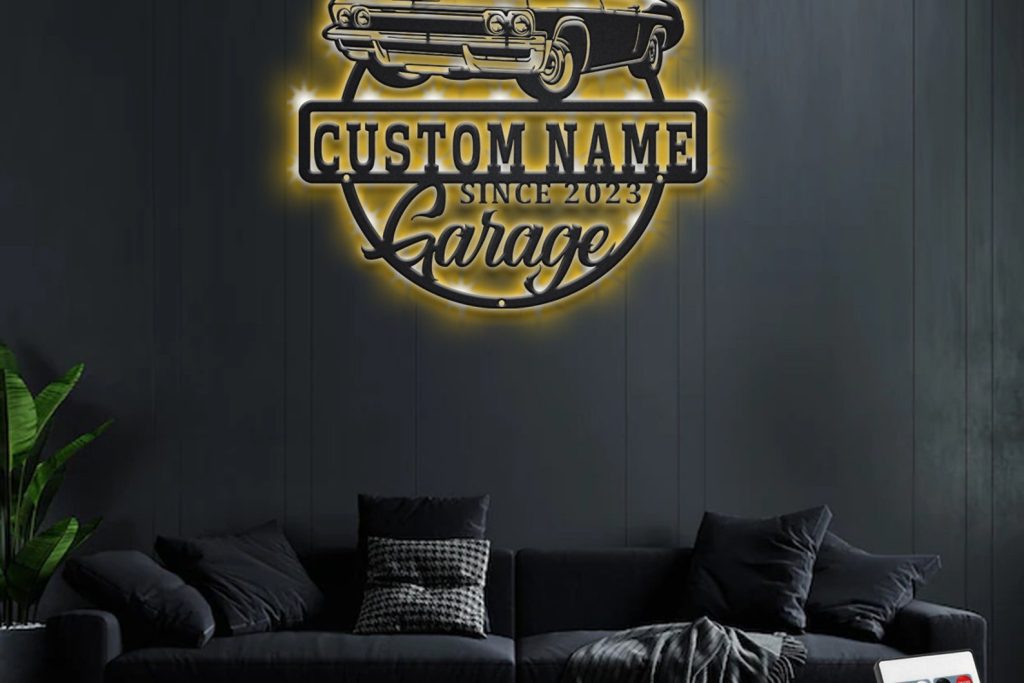 Be the first to review “Personalized Car Garage Name Metal Sign with LED Light”