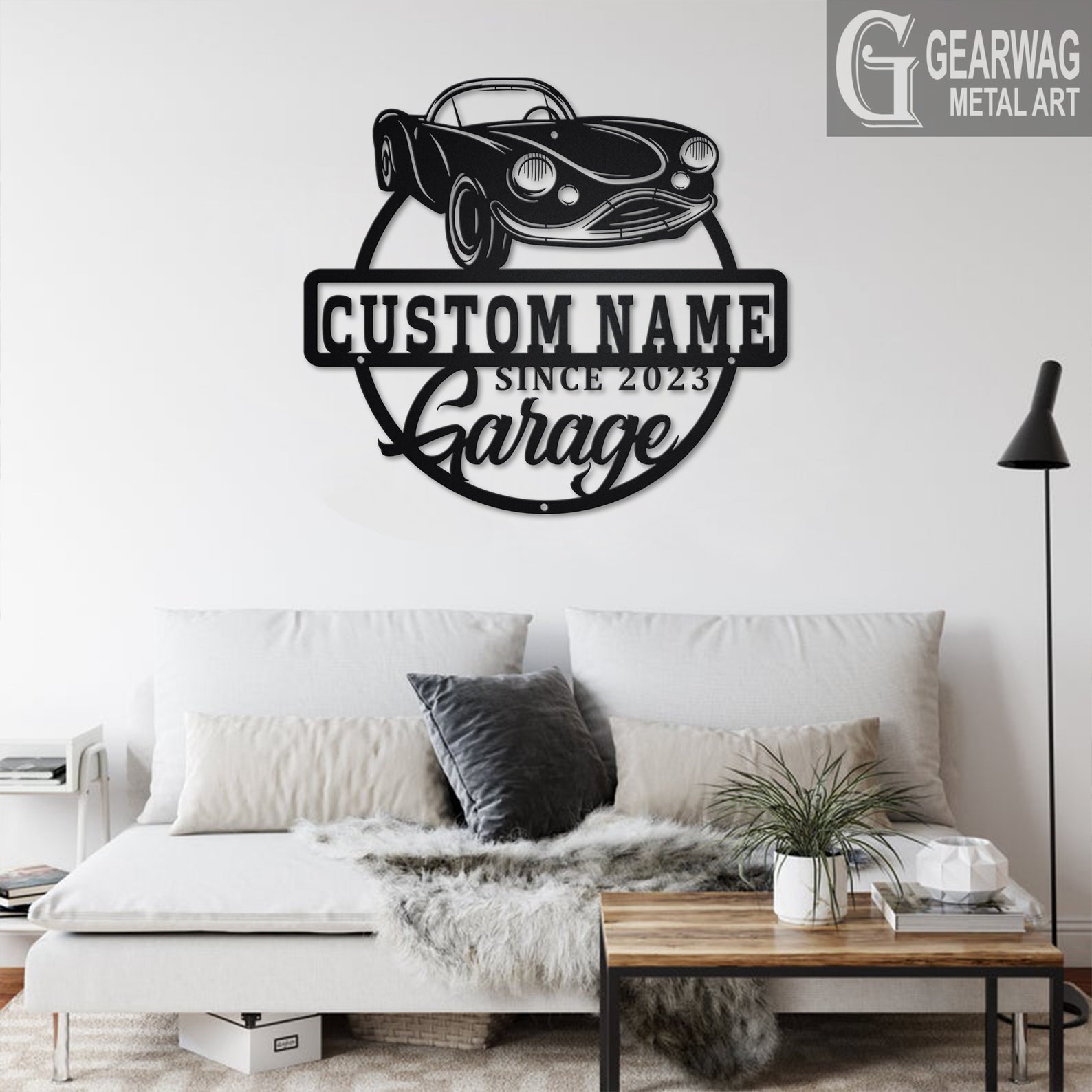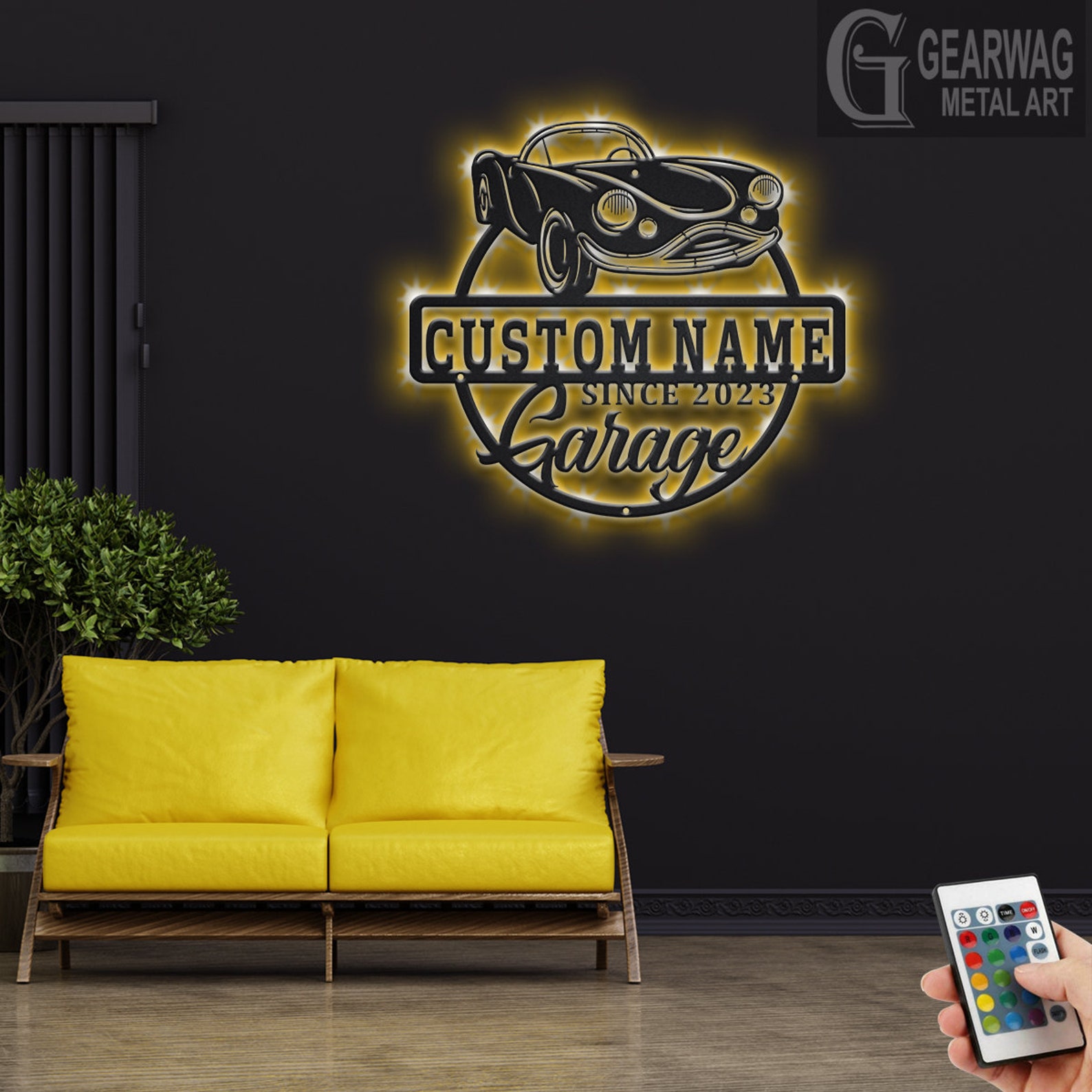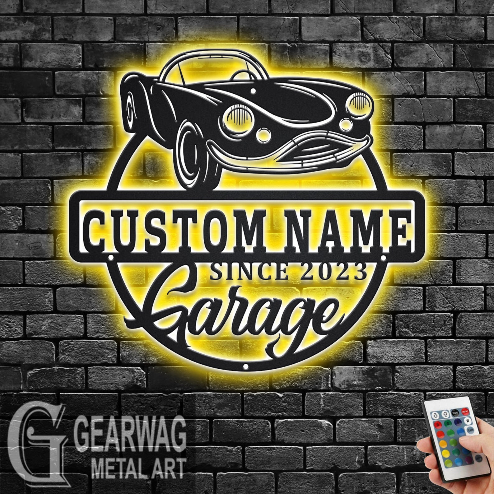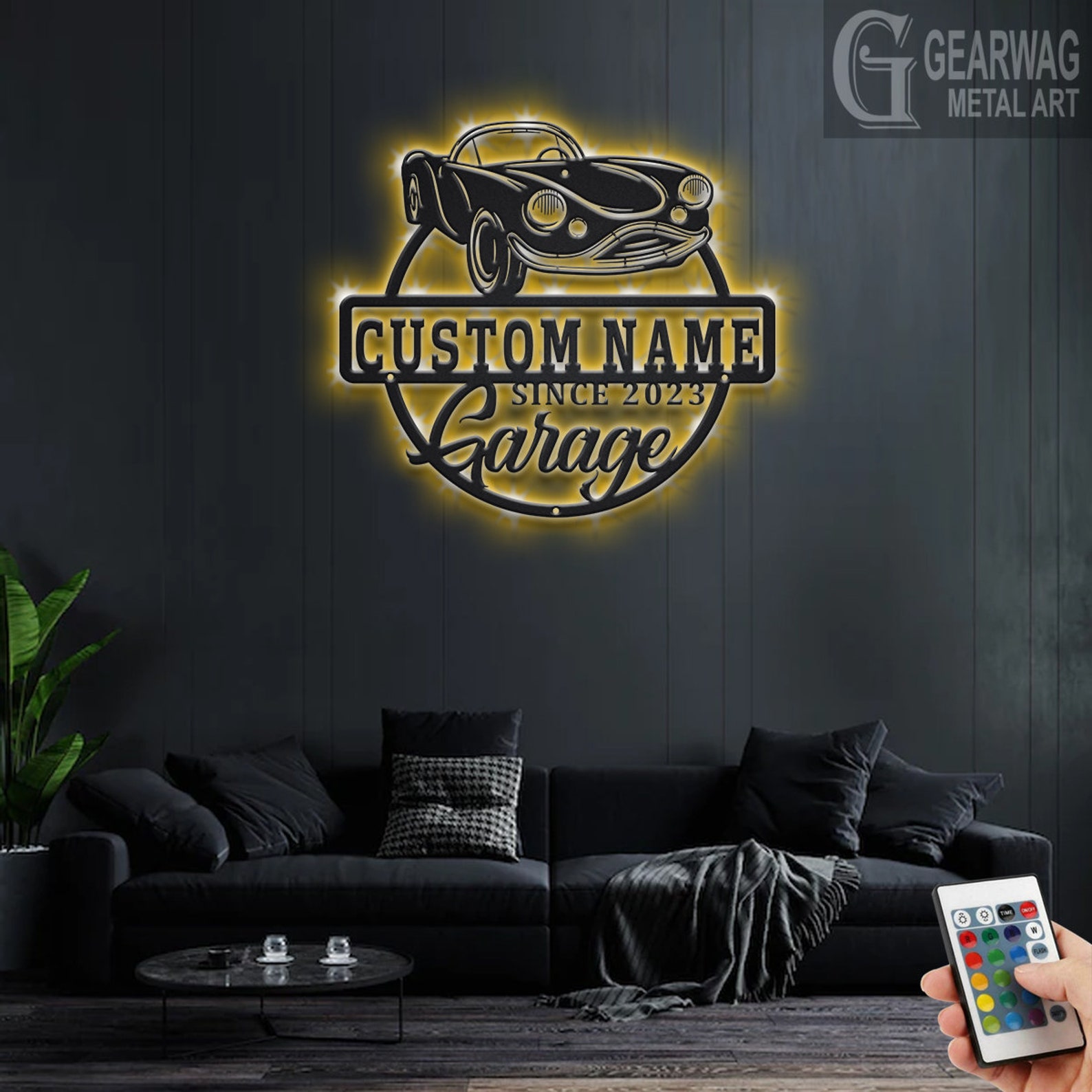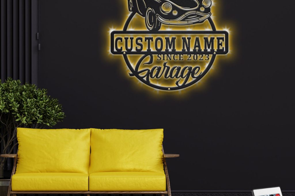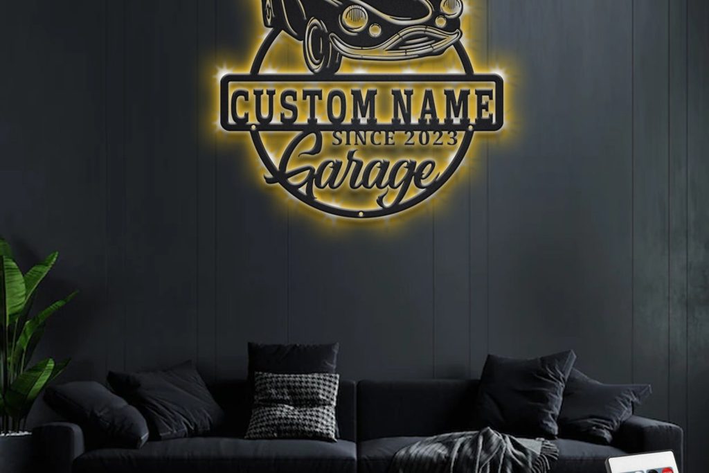 Personalized Car Garage Name Metal Sign with LED Light