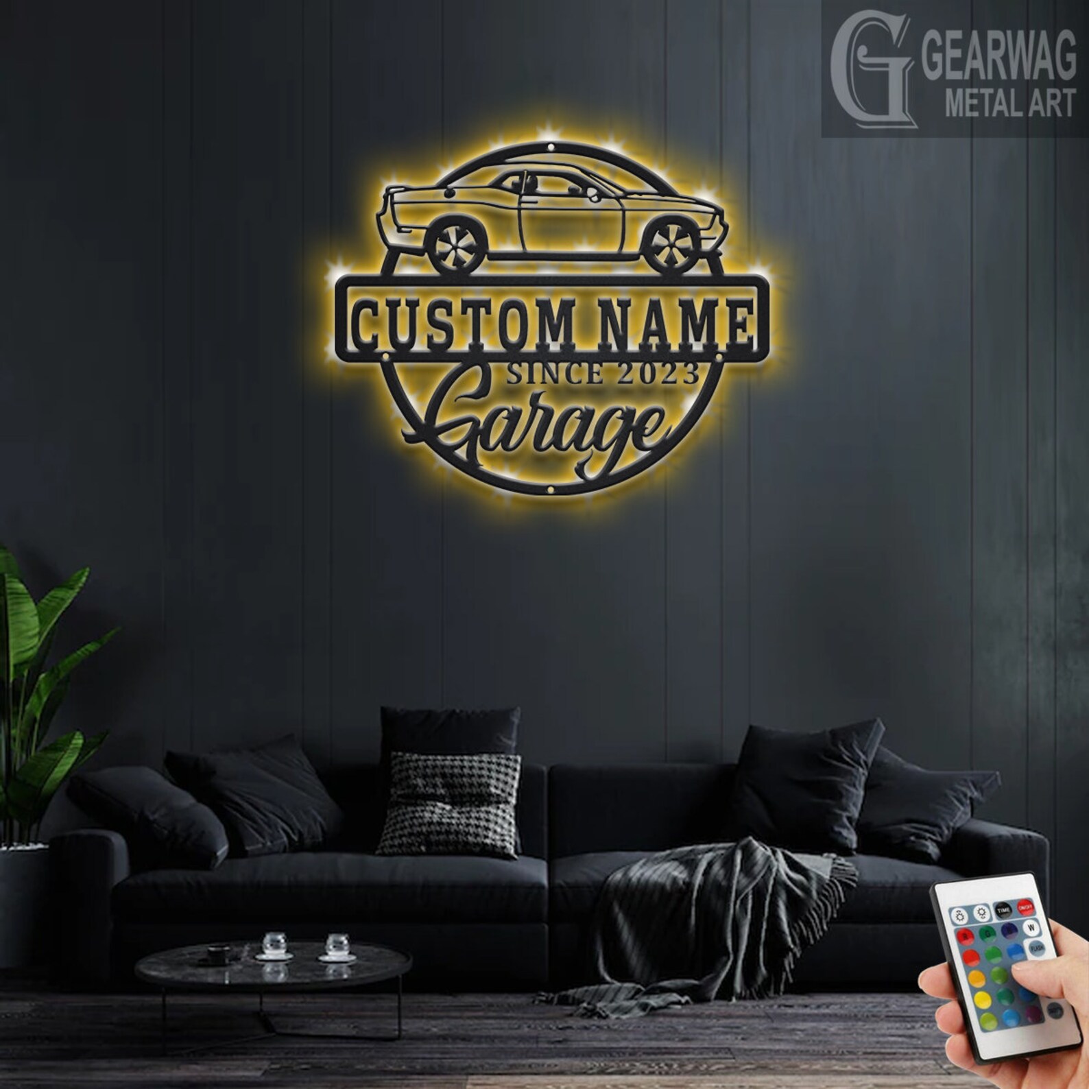 Personalized Car Garage Name Sign with LED Light