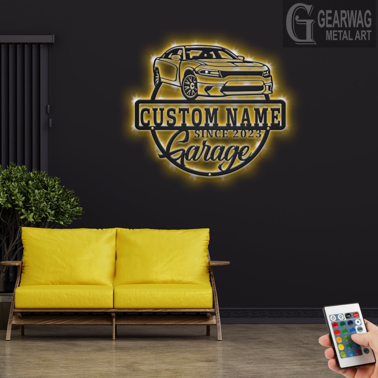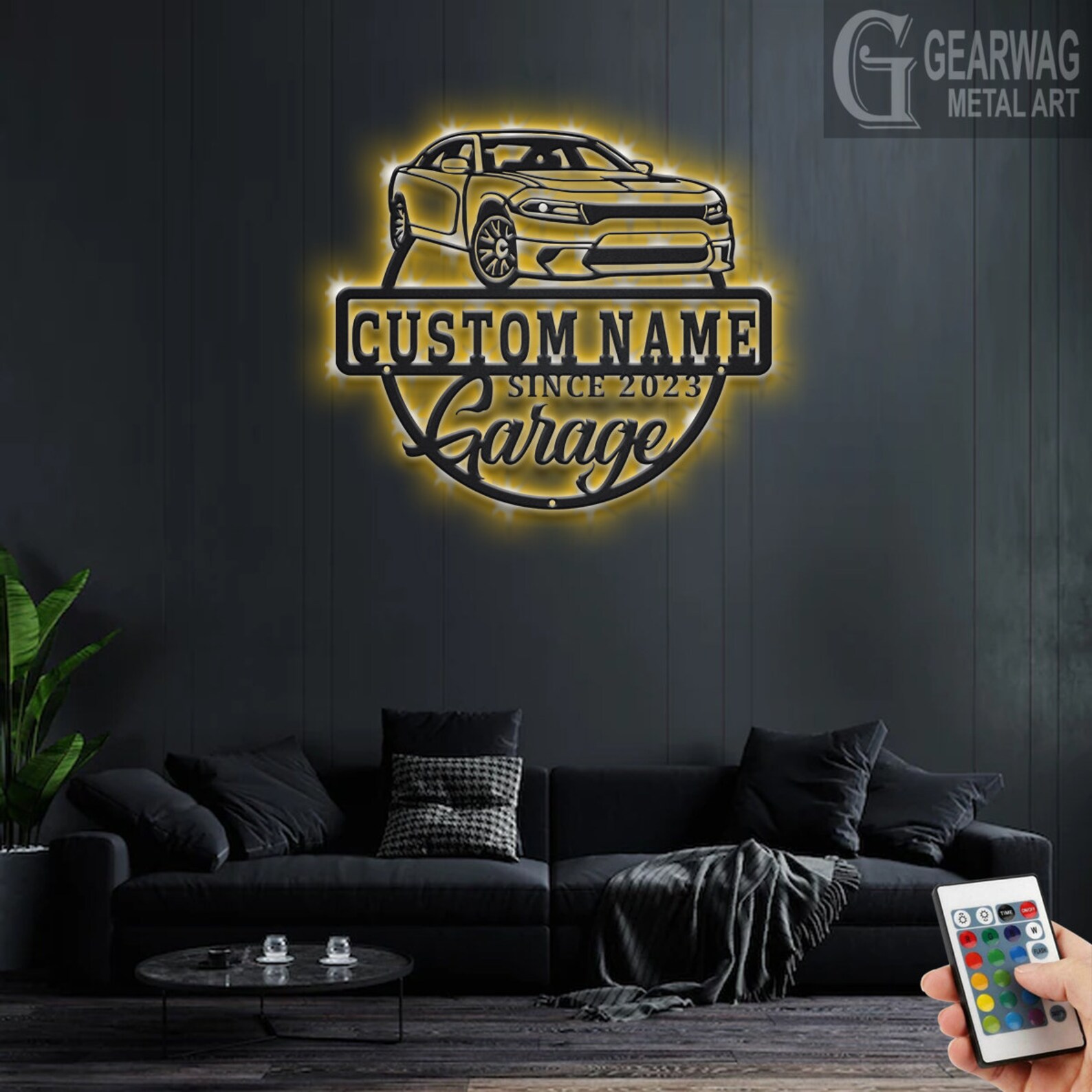 Personalized Car Garage Name Sign with LED Light
