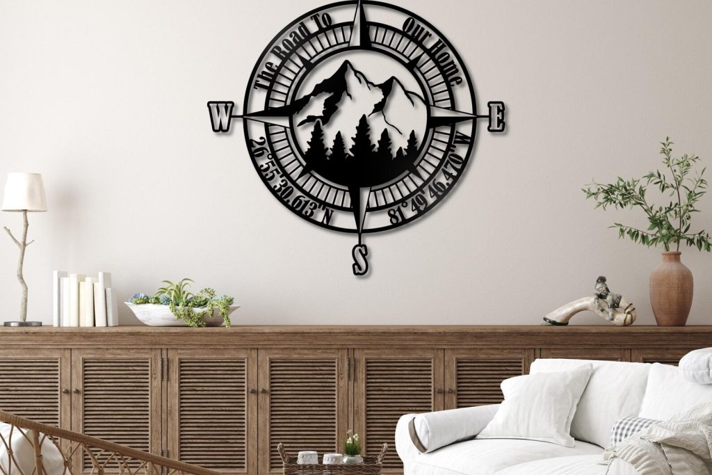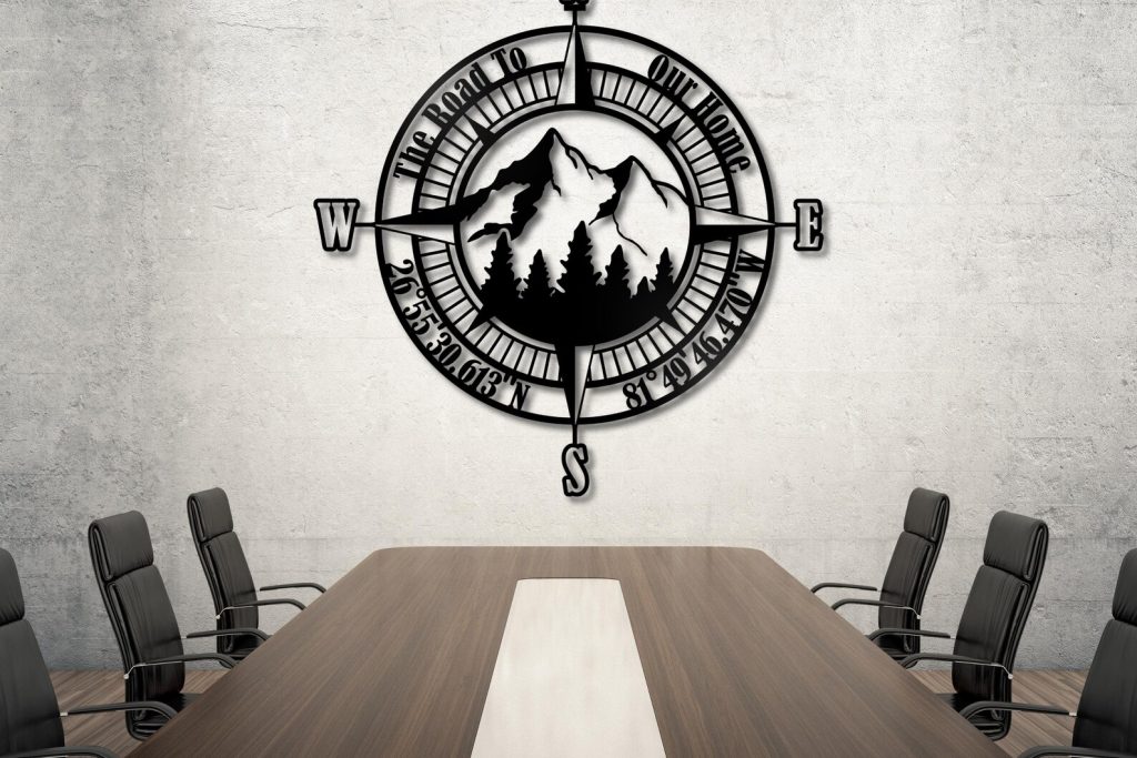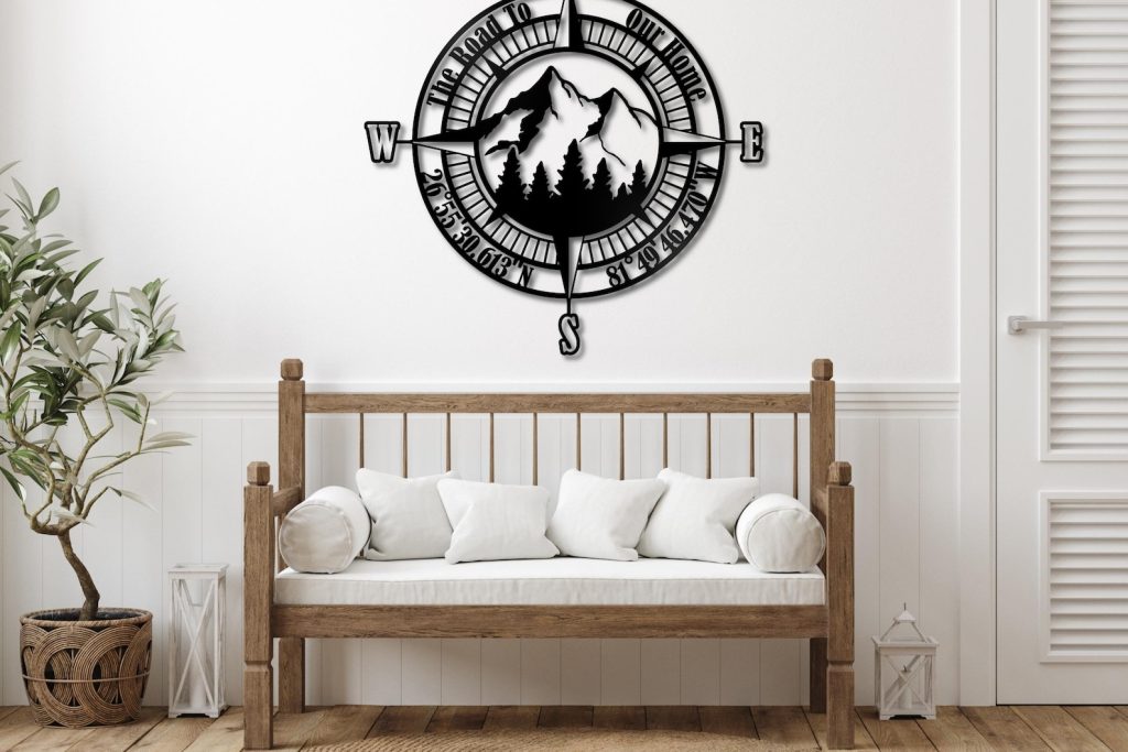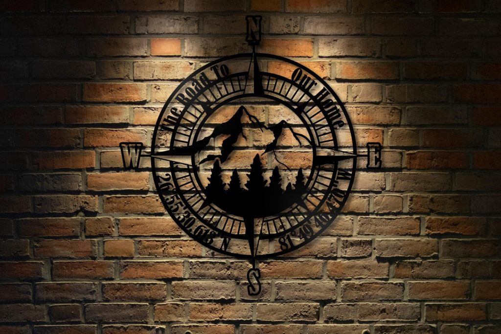 Personalized Compass Metal Wall Decor . Mountain and Forest Themed.