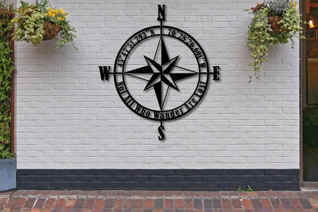 Personalized Compass Metal Wall Decor .