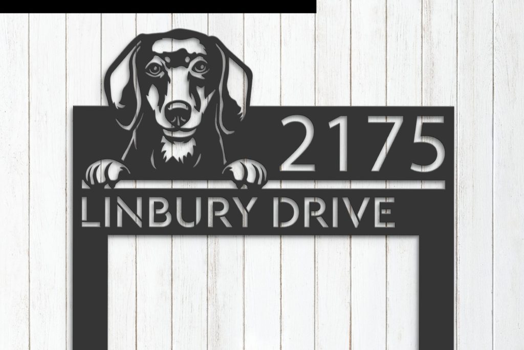 Be the first to review “Personalized Dachshund Metal Address Sign – Custom House Number”