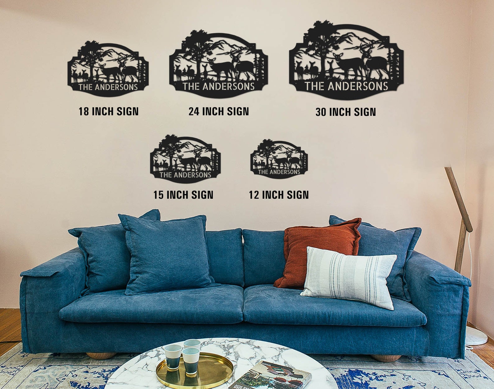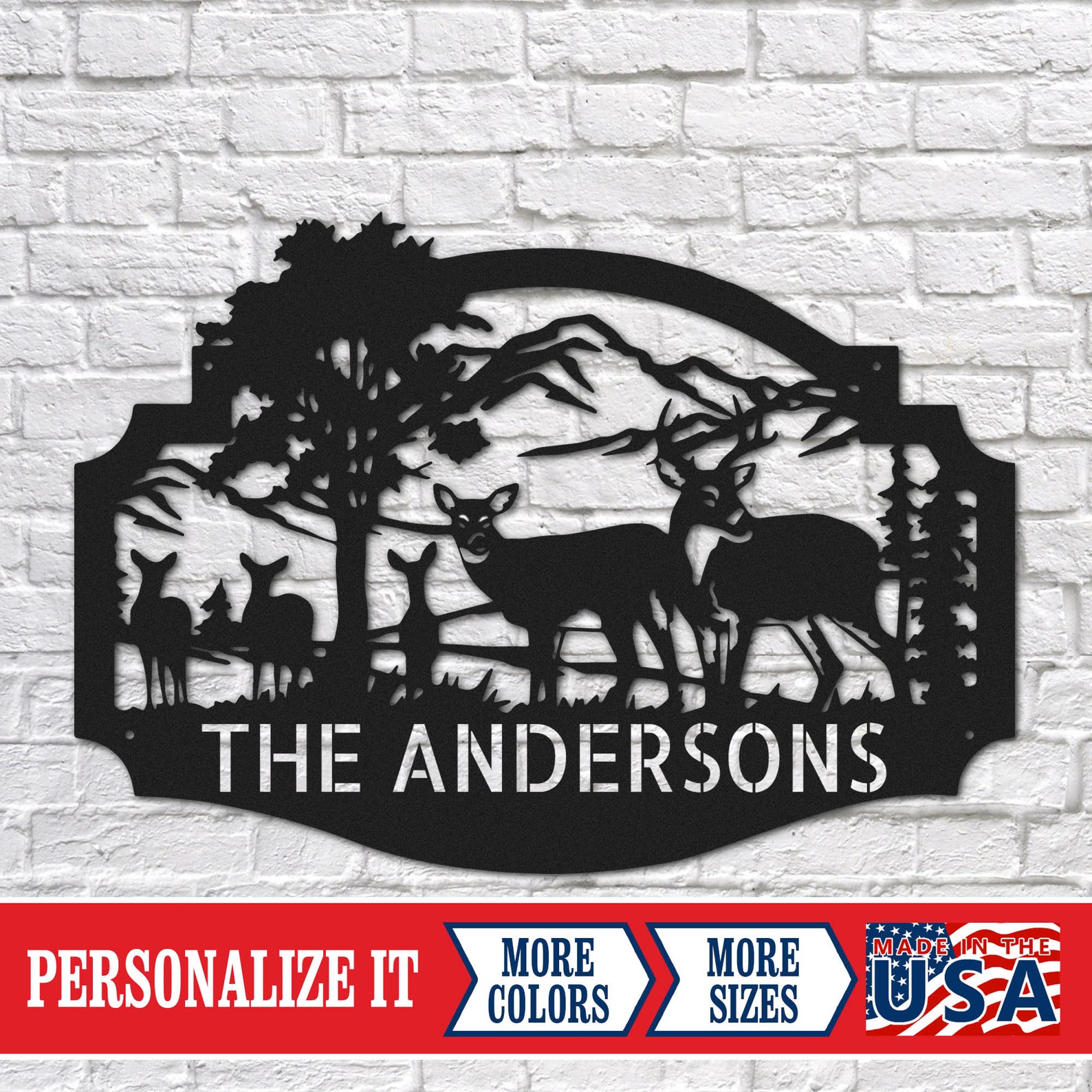 Introducing our captivating Metal Sign featuring a silhouette family of deer against a breathtaking forest backdrop! This meticulously crafted sign combines the beauty of nature with a touch of personalization, making it a must-have for any cabin or nature enthusiast9;s decor.