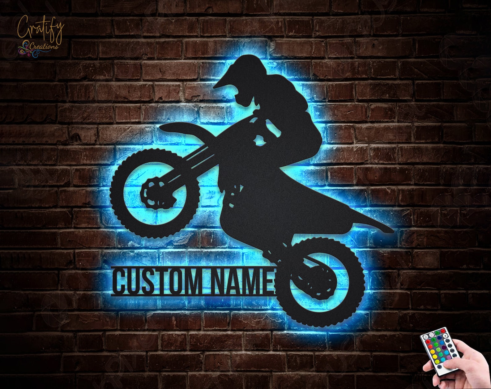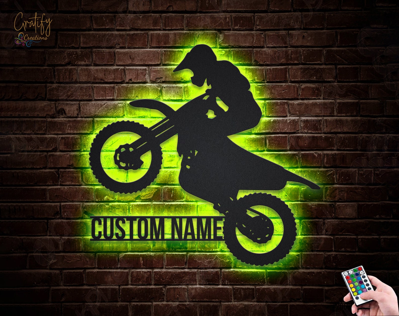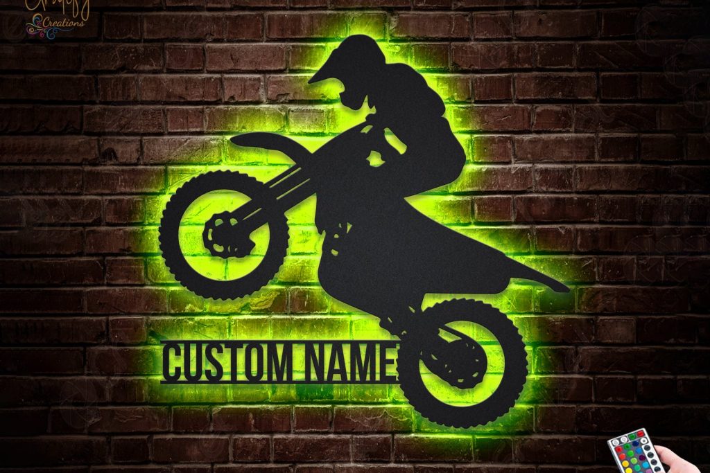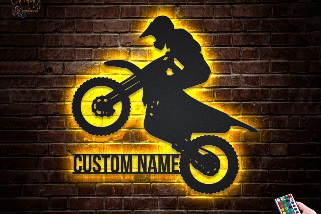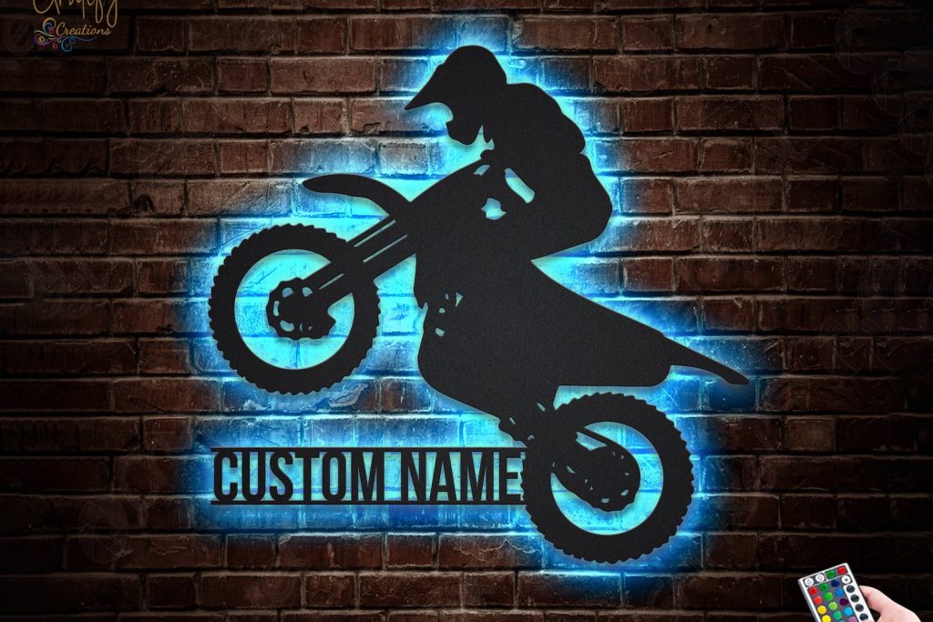 Keywords you can find more related to this product: personalized dirt bike metal sign, LED dirt bike wall art, biker name sign, motocross rider home decor, motorcycle biker gift