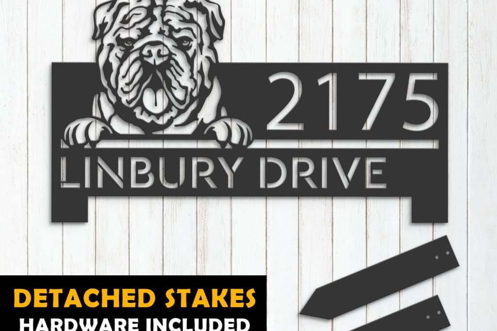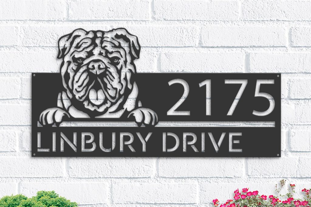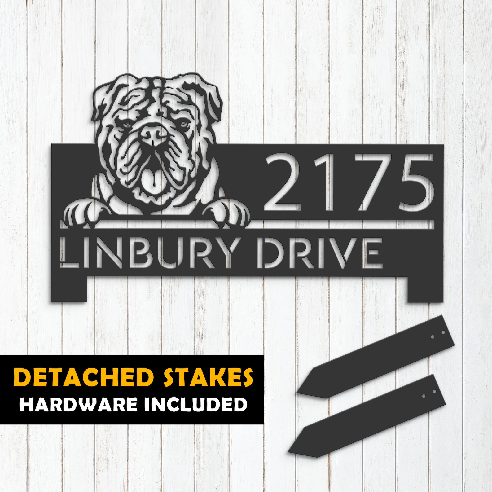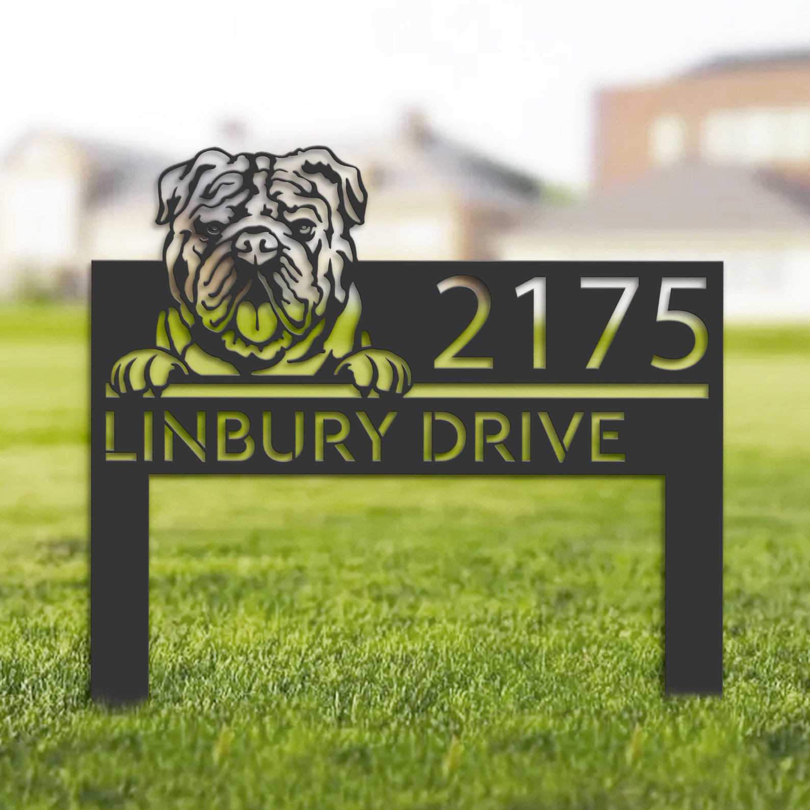 Personalized English Bulldog Metal Address Sign, Dog Yard Stake