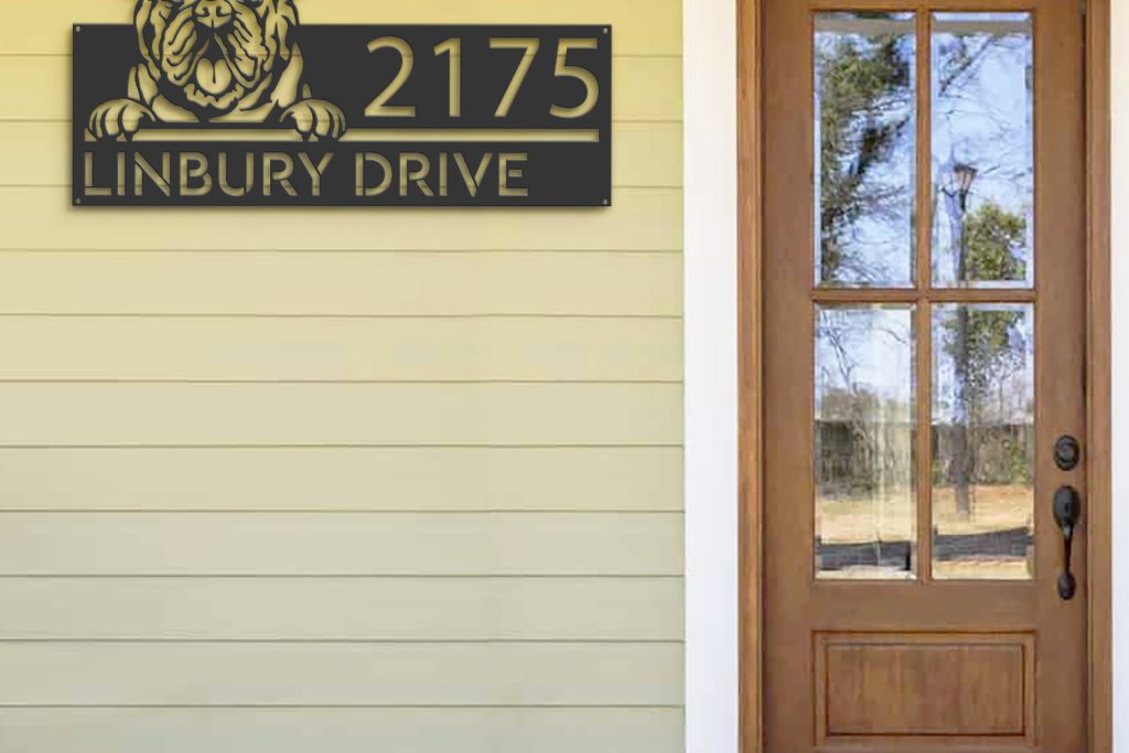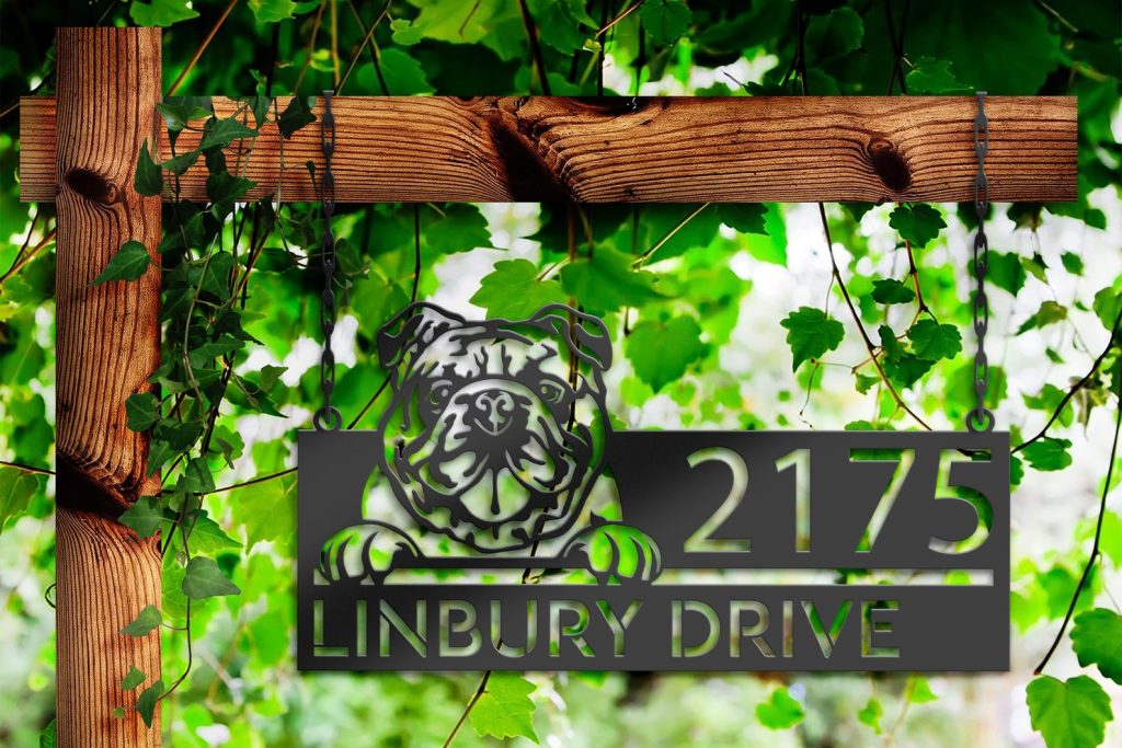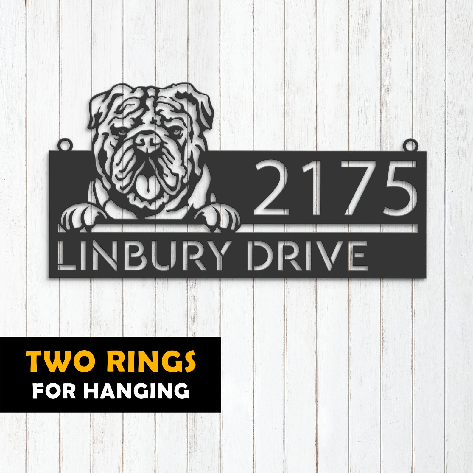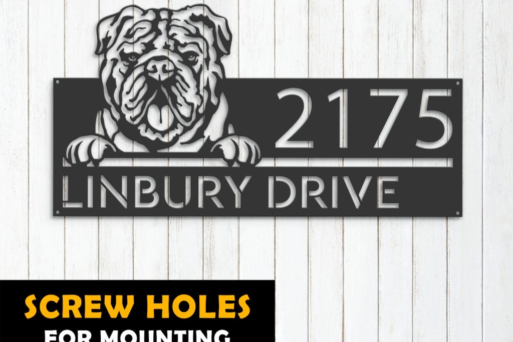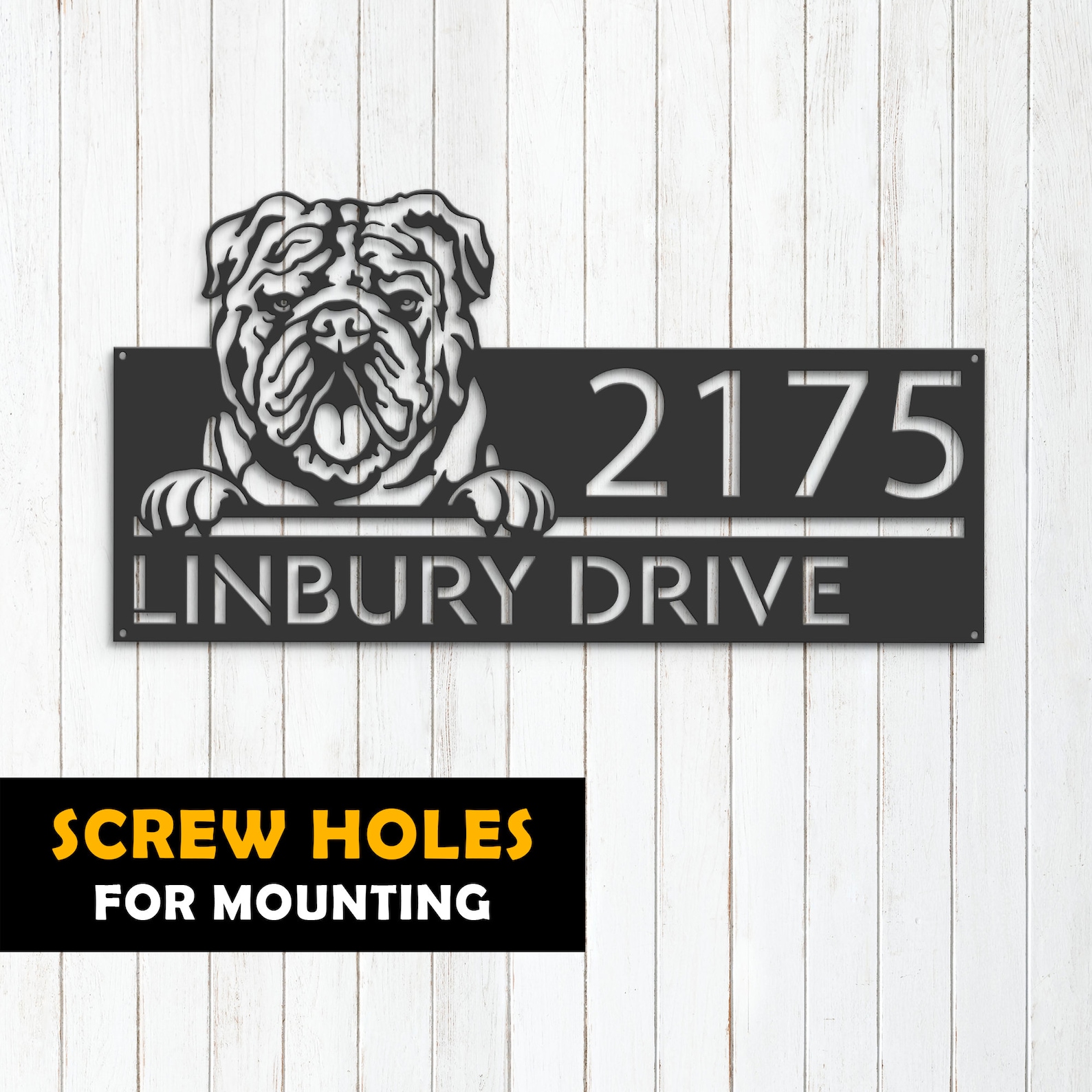 Personalized English Bulldog Metal Address Sign, Dog Yard Stake