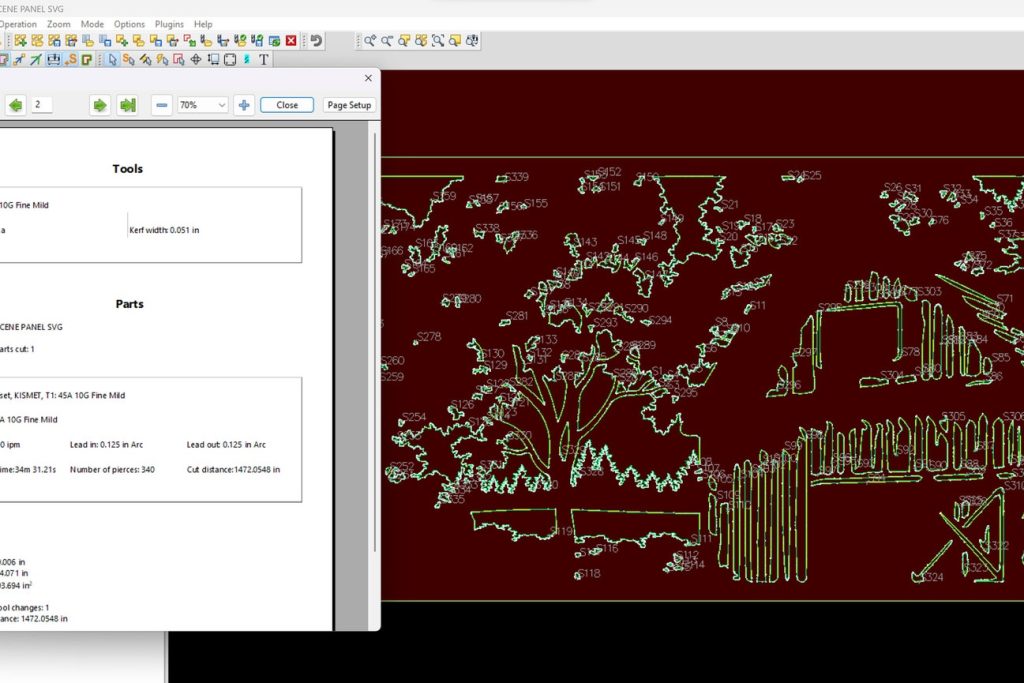 Our digital files are meticulously designed with a .051" kerf compensation, tailored for the fine cut tolerances of the Hypertherm plasma cutter, ensuring clean, precise cuts and enhancing the beauty and detail of your projects. Kerf refers to the material removed during the cutting process. By precisely accounting for this in our designs, we guarantee that details are preserved, and assemblies fit seamlessly, particularly on thinner metals and at larger sizes. The larger the design, the more effectively it compensates for kerf, making your projects come together perfectly.