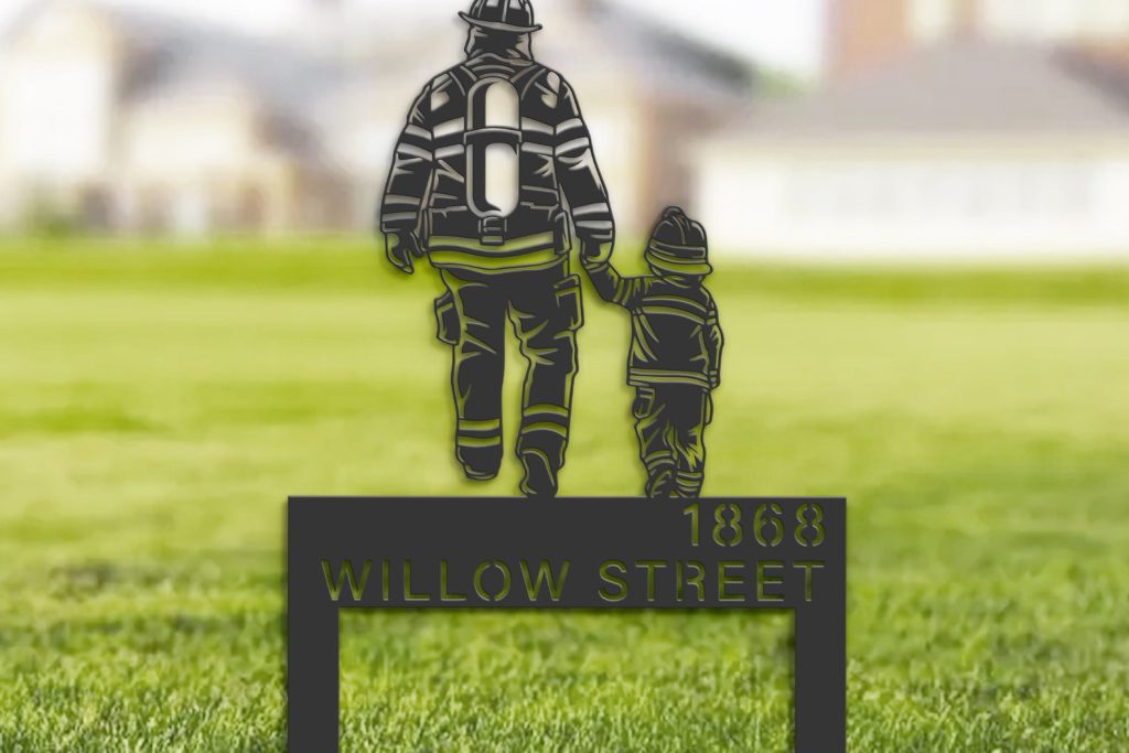 Be the first to review “Personalized Firefighter Metal Address Sign – Father and Son Plaque”