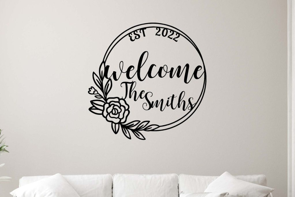 Personalized Welcome Floral Metal Sign with Established Date