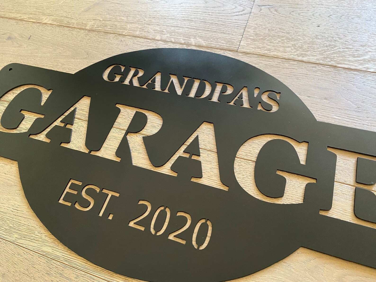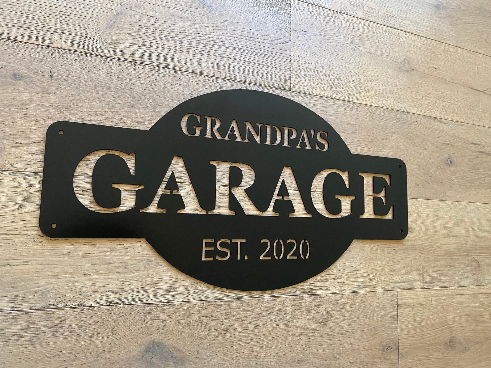 Our personalized "Dad9;s Garage" Family Name Sign is a perfect addition to any space within his sanctuary. It also serves as a thoughtful gift for special occasions like weddings or anniversaries. You have the option to include first names or the family name, as exemplified in our sample pictures.