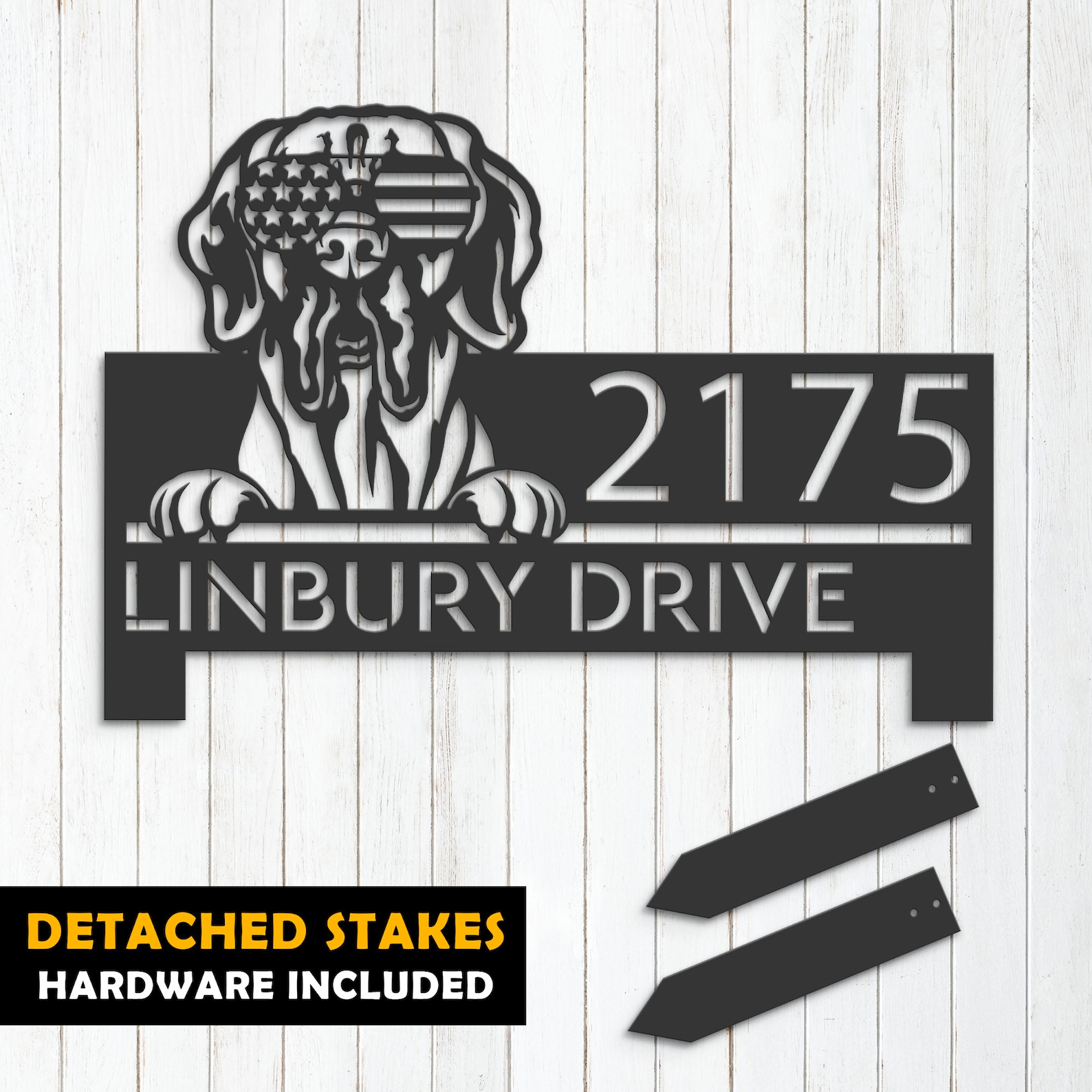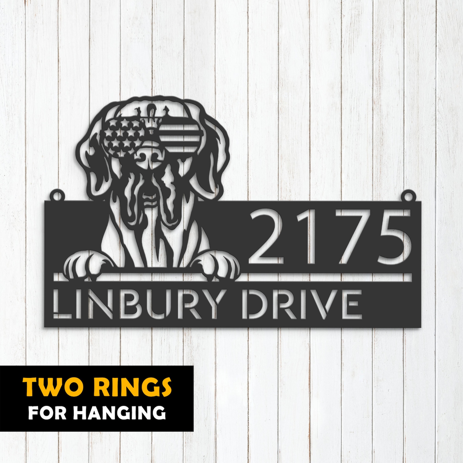 Be the first to review “Personalized Great Dane Dog Metal Address Sign – US Flag Glasses”