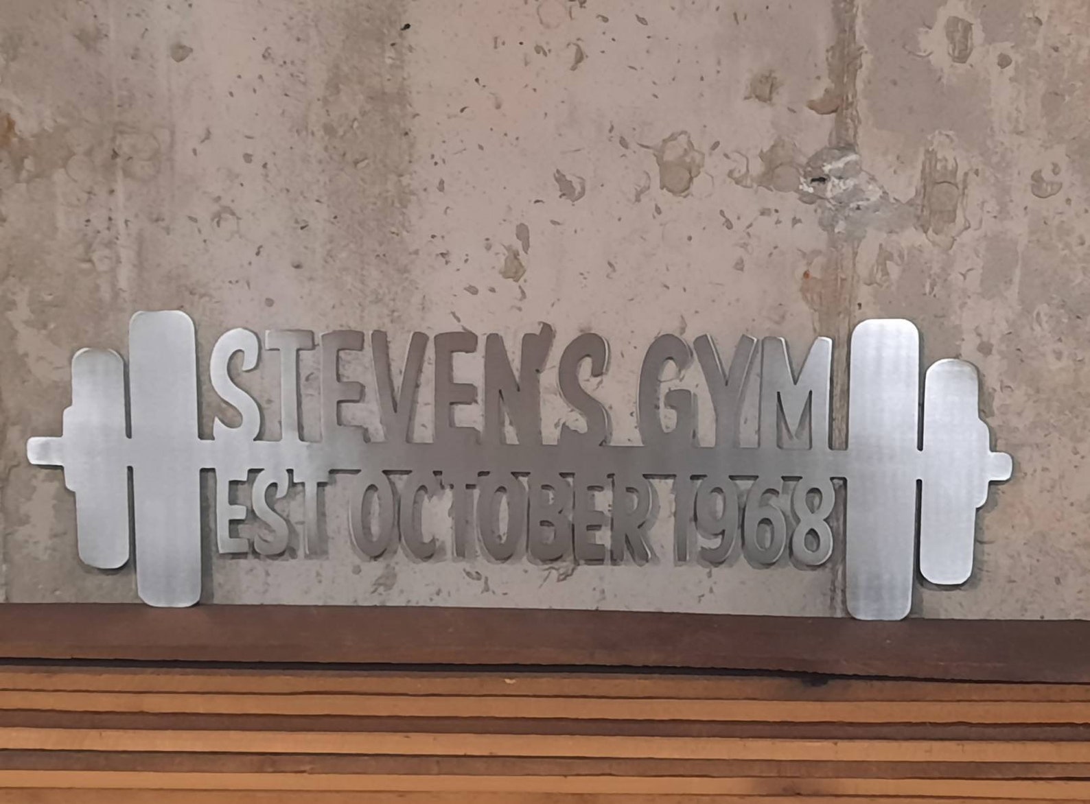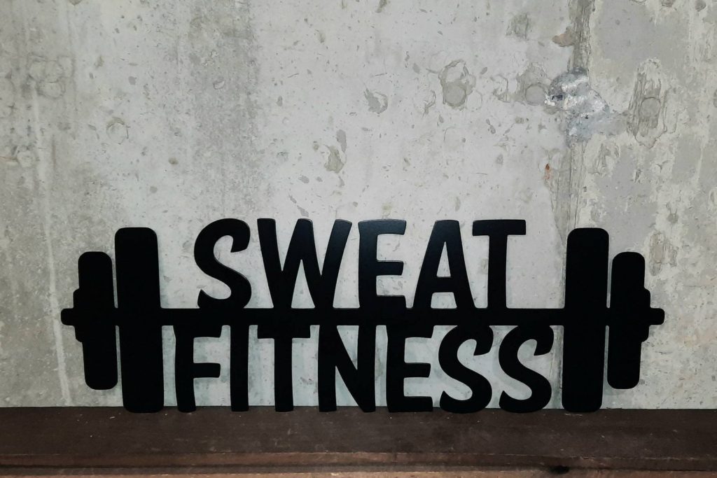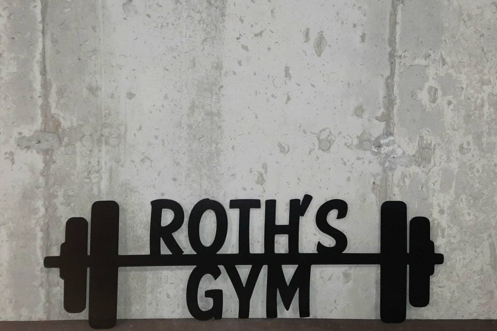 This metal gym sign is made out of 16 gauge steel and a cnc plasma cutter. Hand sanded and prepped.