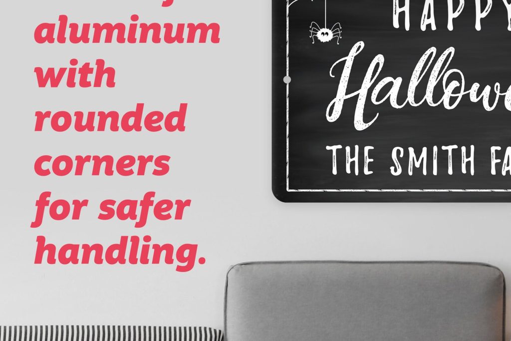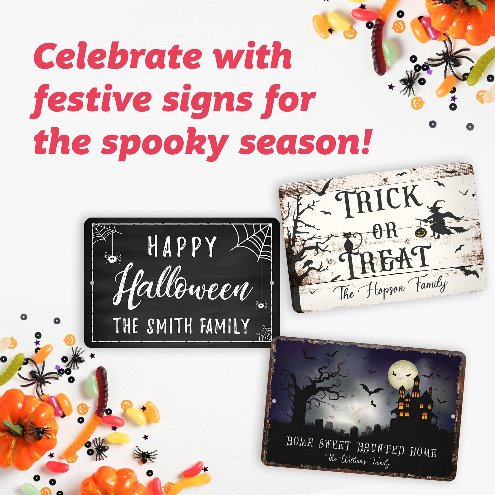 When its time to carve jack olanterns and plan your costume party, make sure your home is in the holiday spirit with fun and spooky wall signs exclusively from Pattern Pop. This sturdy aluminum sign is hand pressed right here in the USA and personalized just for you, giving you high-quality home decor that shows off your personality without having to wait months for it to be shipped from overseas. And with the custom personalization, these signs are a wonderful gift for anyone who loves anything spooky.