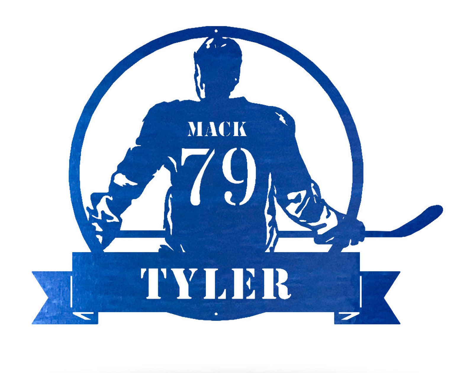 This Beautiful Hockey Monogram is constructed of 18 gauge steel on a Fiber Laser and then Powder Coated to give this item a one of a kind, unique finish.
