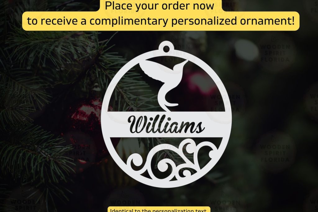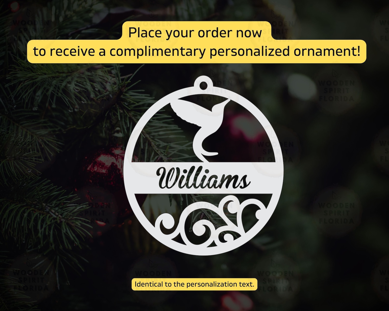 Complement your purchase with a FREE ornament, tailored to match the personalized text of your order.