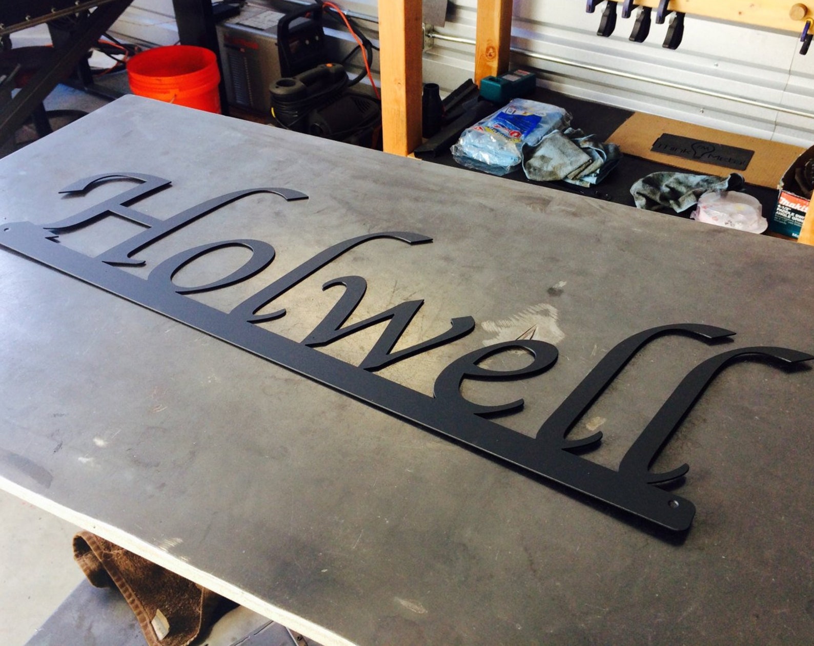 This custom last name sign will make a great addition to any home. We use a plasma CNC table to cut your family name from solid steel. This piece is sure to make a statement! It is perfect for moms, dads, children or anyone who "has everything". We can do any word of your choosing.